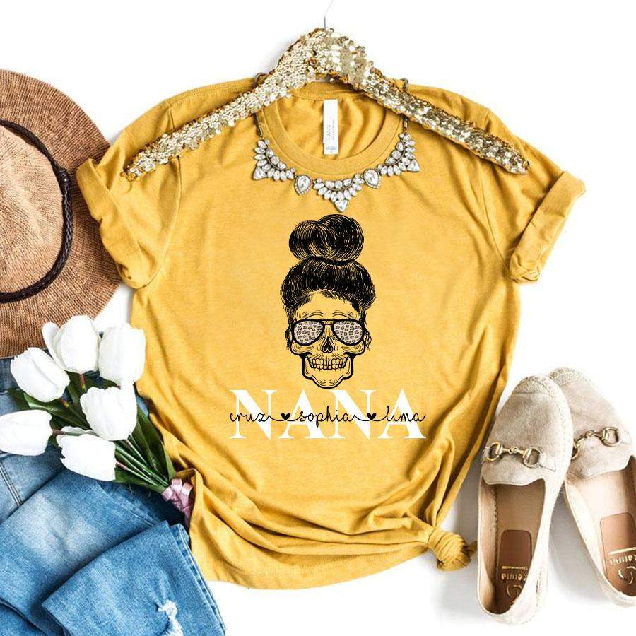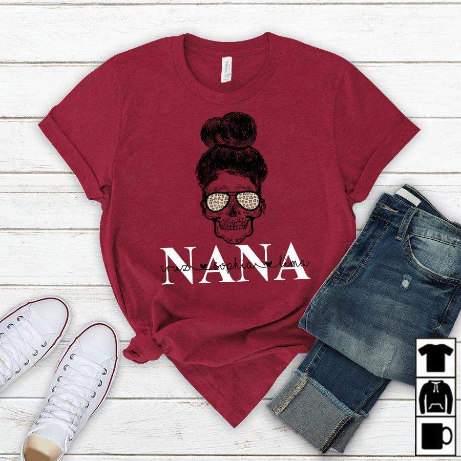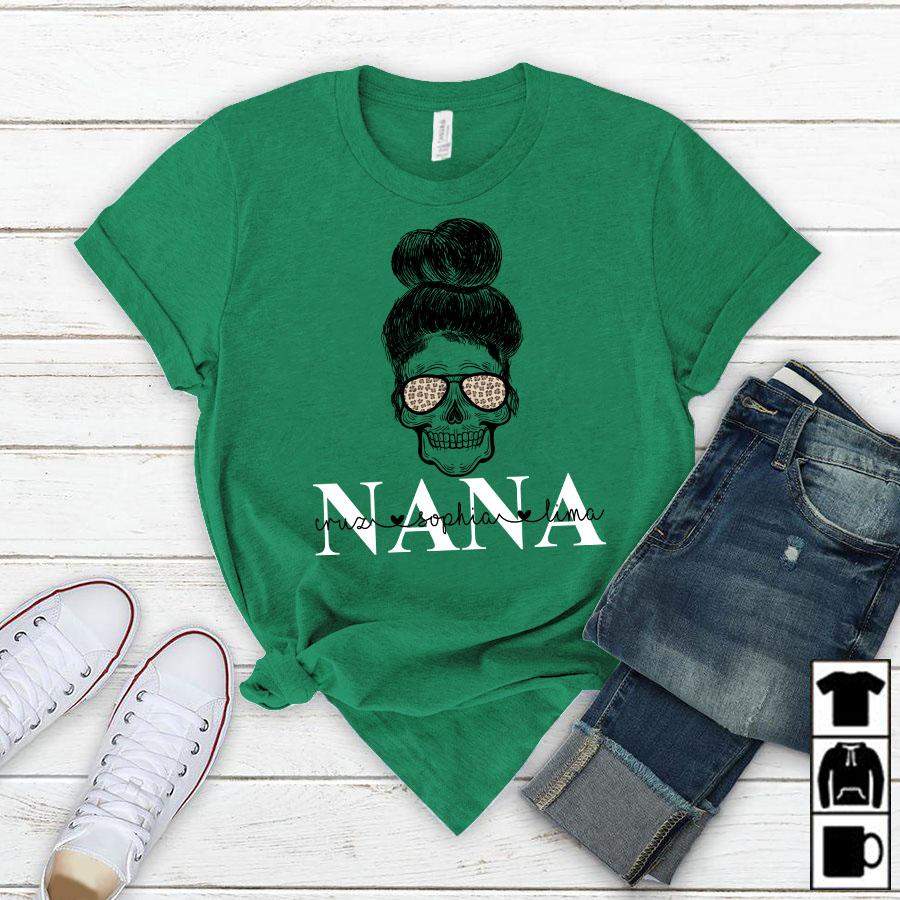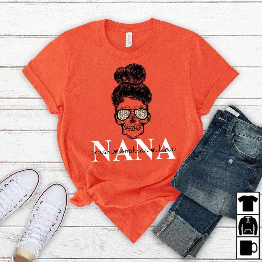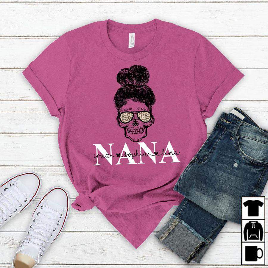 Namashops Personalized Nana And Grandkids Skull, Custom Names Shirt