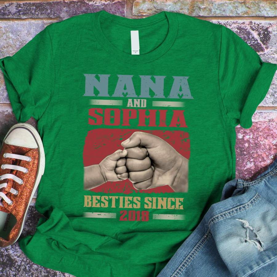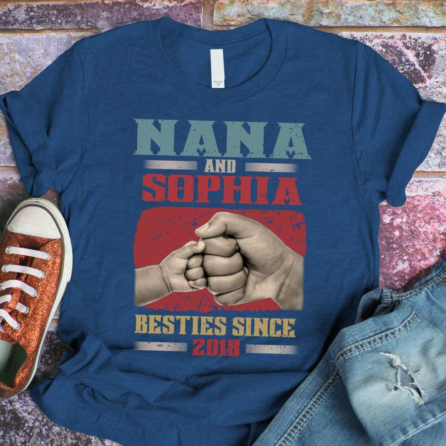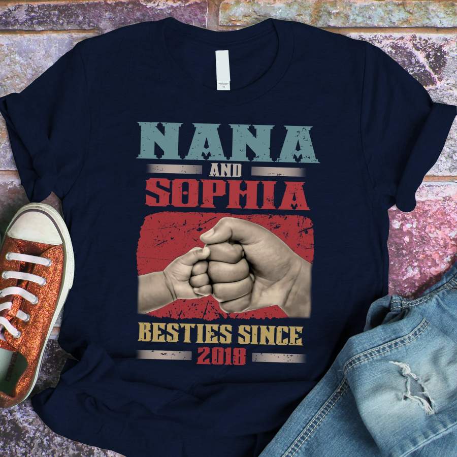 Namashops Personalized Nana – Grandkid – Besties Since Birth, Custom Names Shirt