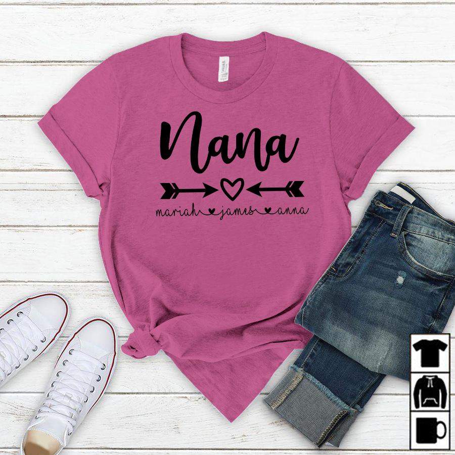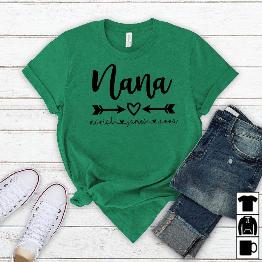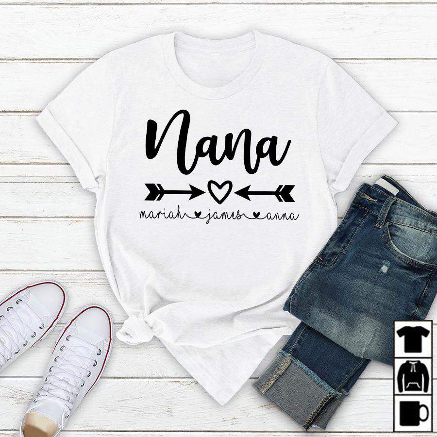 Namashops Personalized Nana Heart Shirt, Custom Nana Shirt