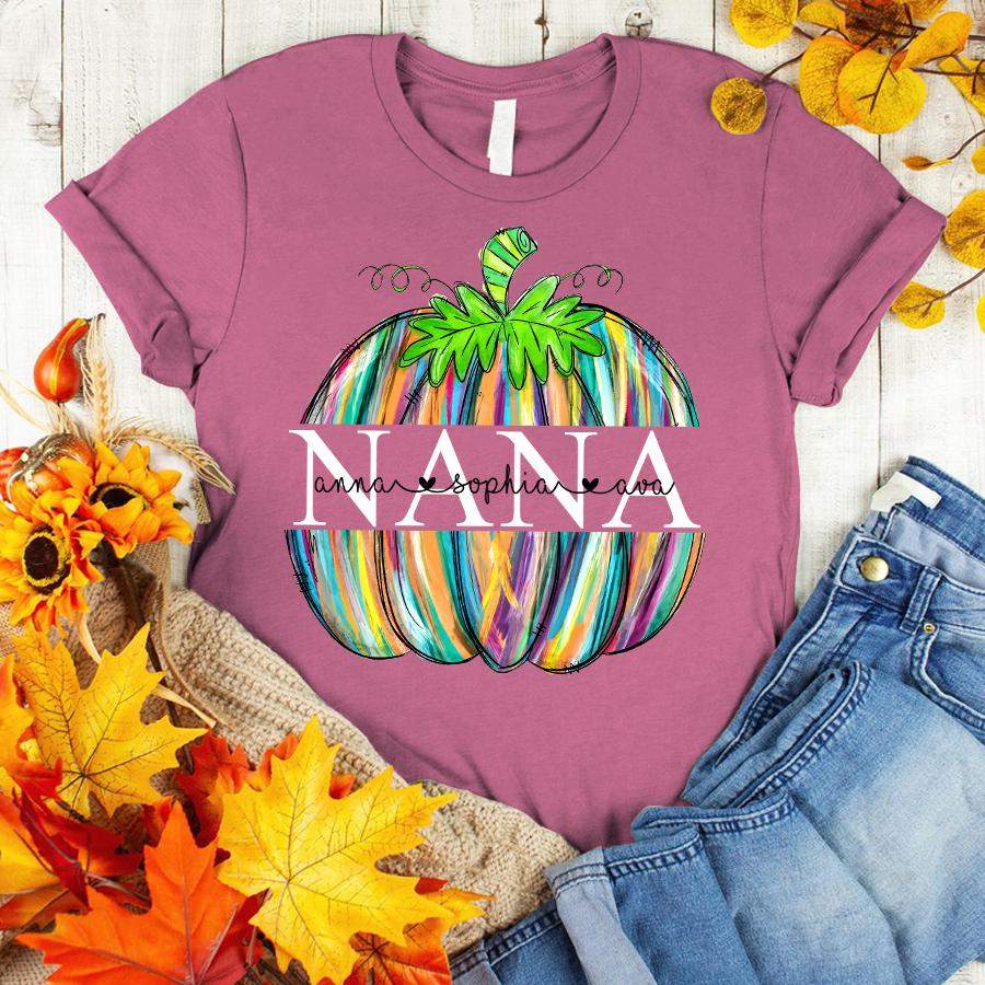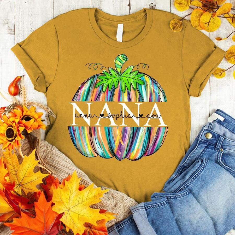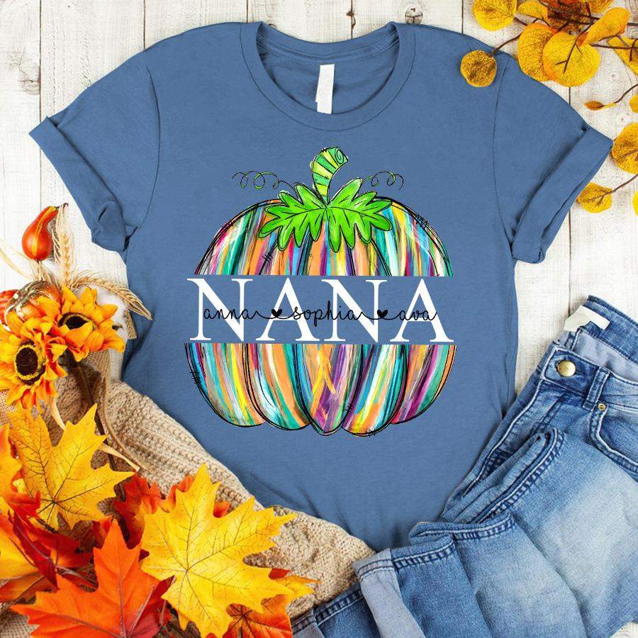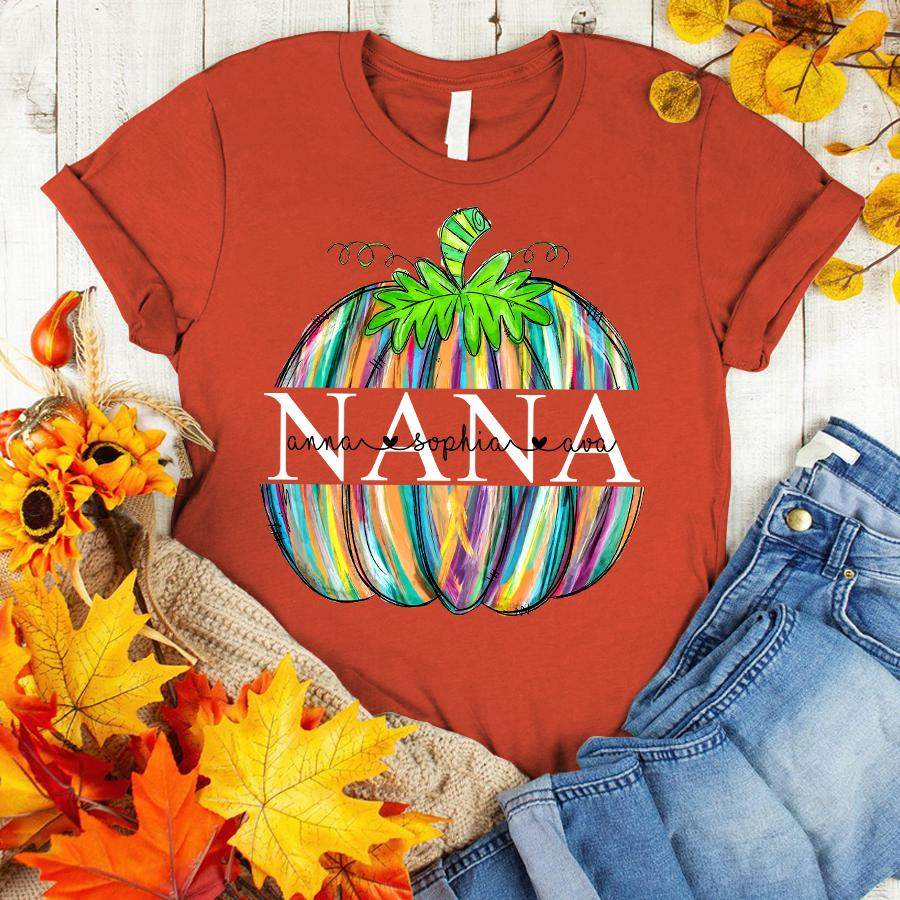 Namashops Personalized Nana Pumpkin And Grandkids, Halloween Shirt