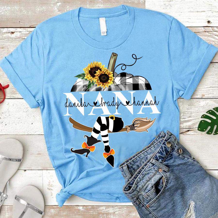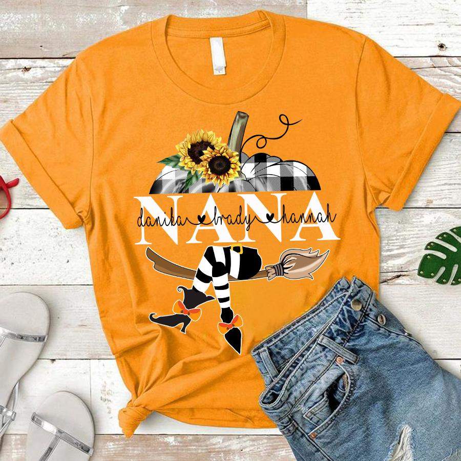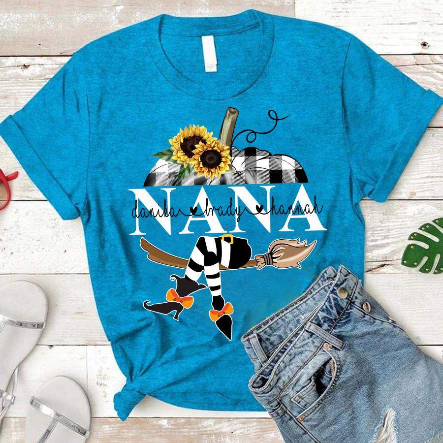 Namashops Personalized Nana Pumpkin Witch, Custom Names Shirt