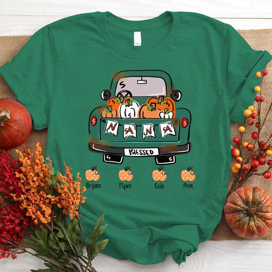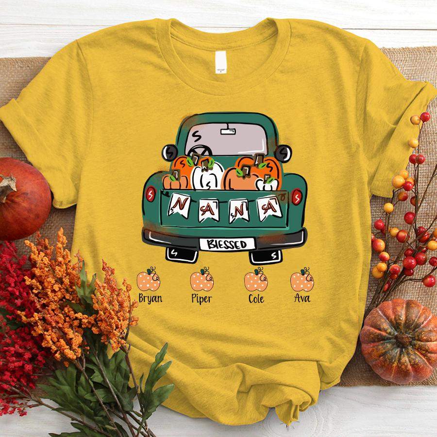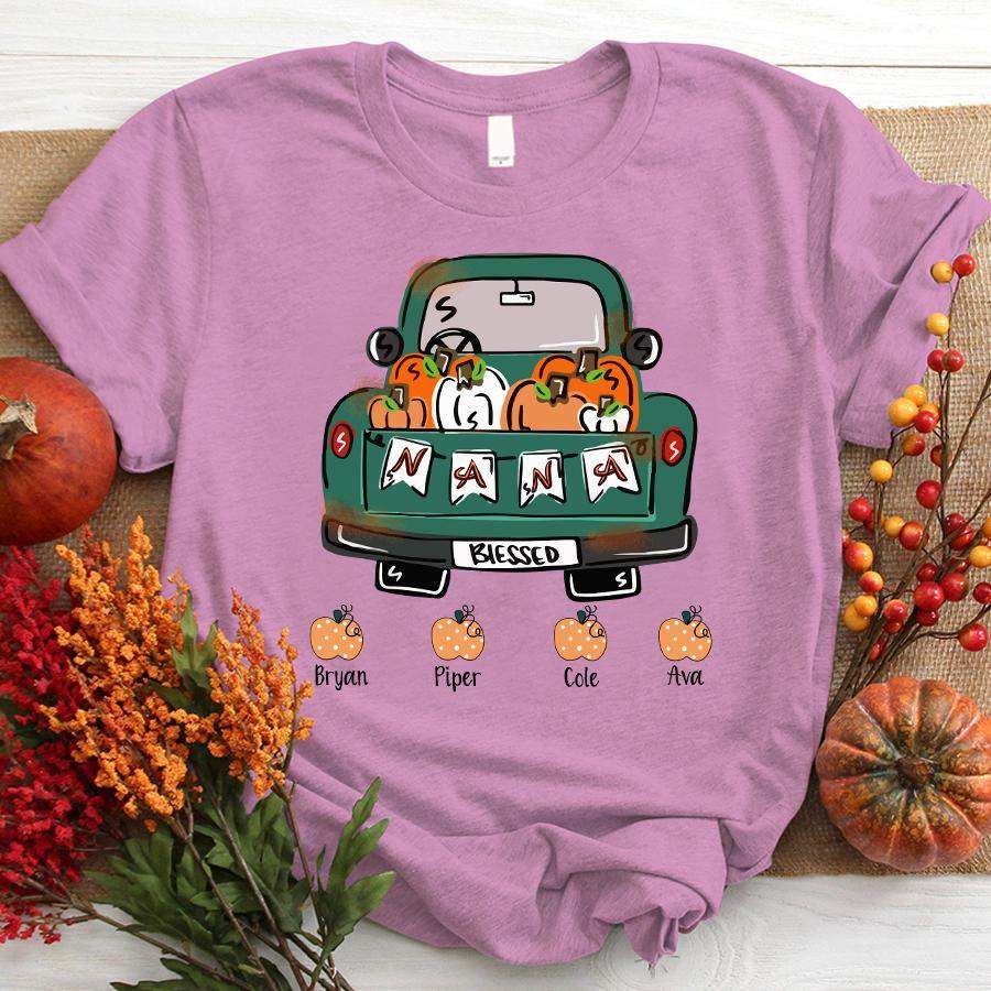 Namashops Personalized Nana Truck And Pumpkin – Custom Names Shirt