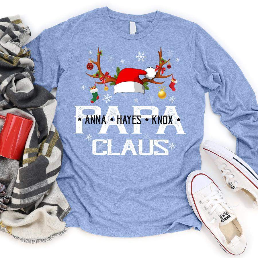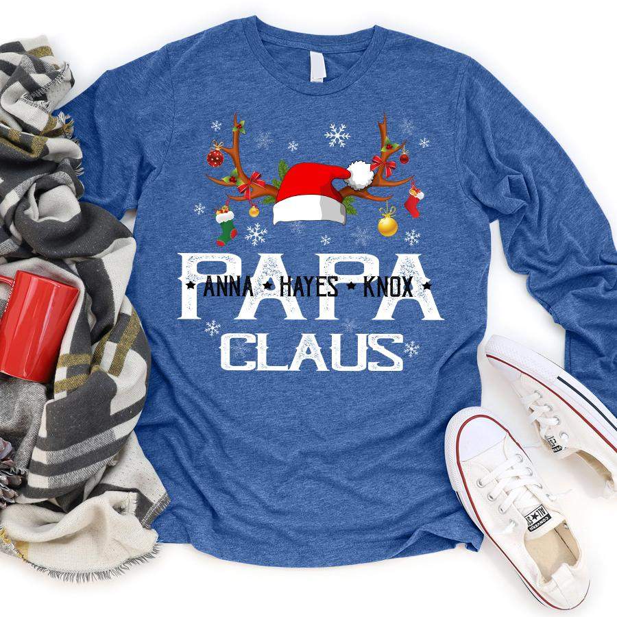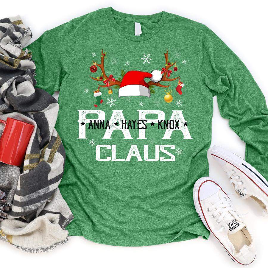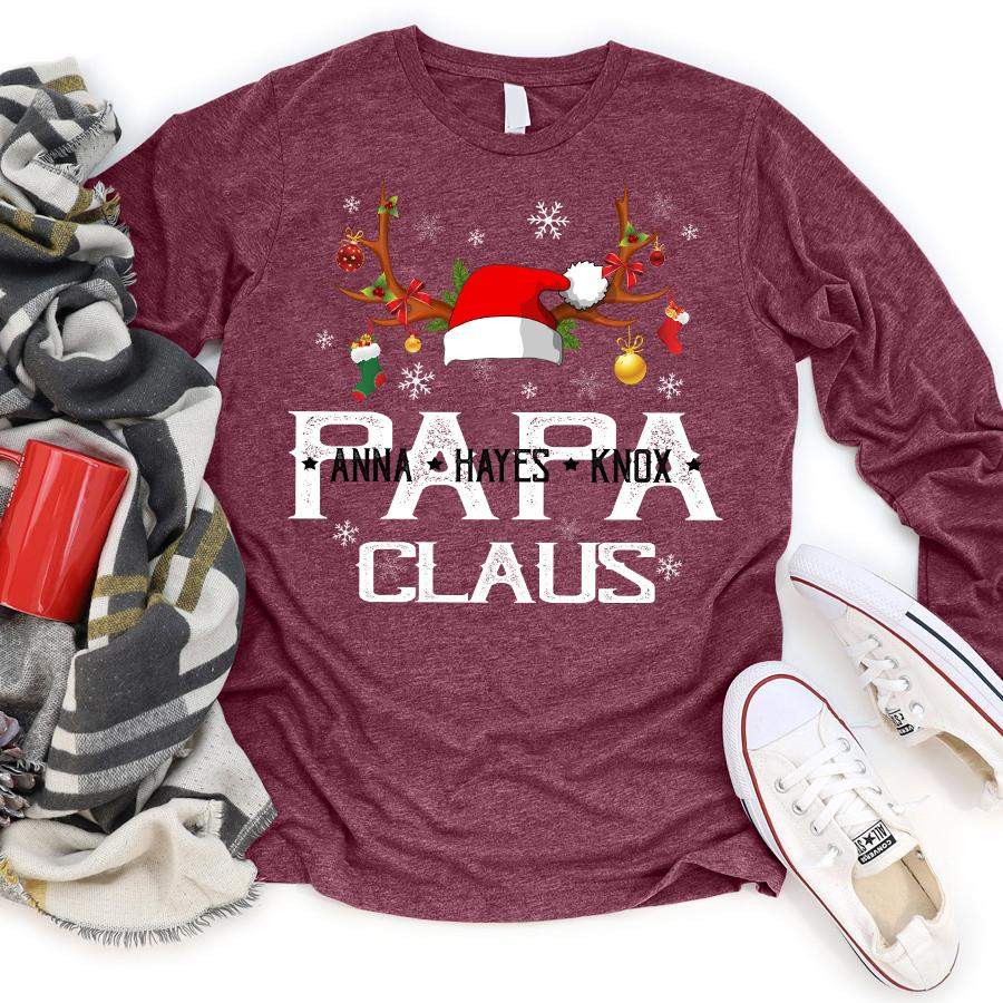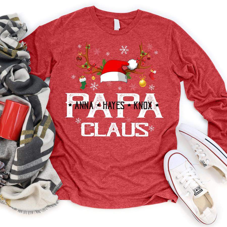 Namashops Personalized Papa Claus, Custom Names Grandpa, Long Sleeve Shirt