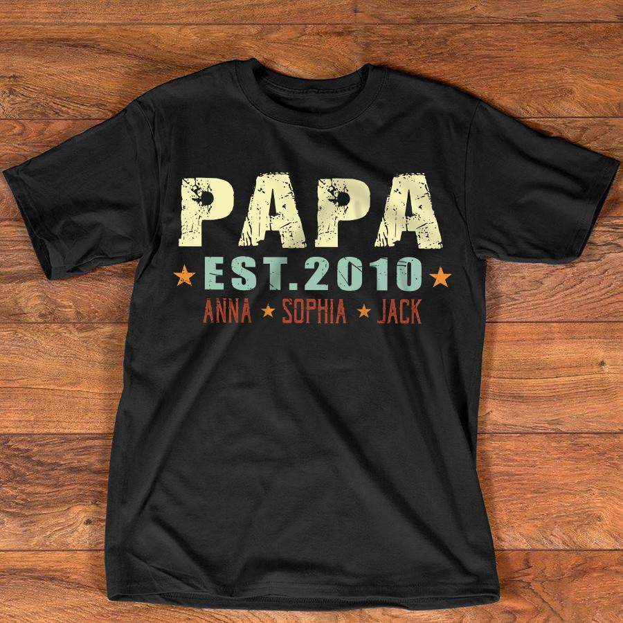 Namashops Personalized Papa – Est – Kids Name, Custom Names Shirt