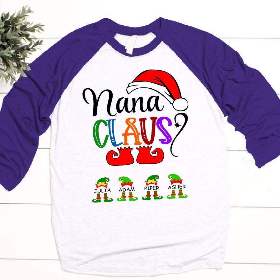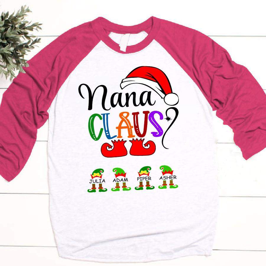 Nana Claus Elf Christmas | Personalized Baseball T-shirt