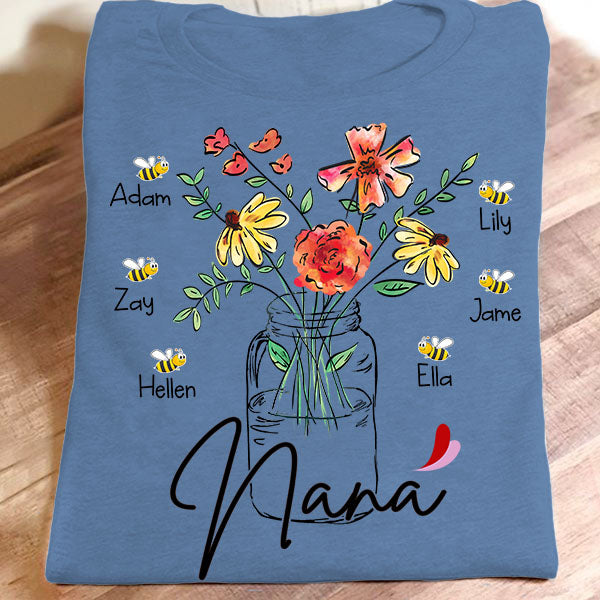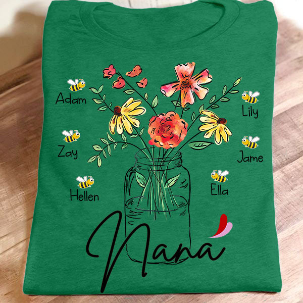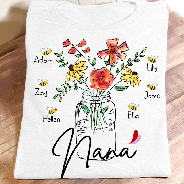 Nana – Flower Bottle Art | Personalized T-Shirt