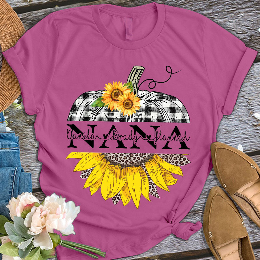 Nana – Flowers – Pumpkin | Personalized T-Shirt