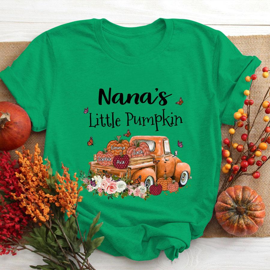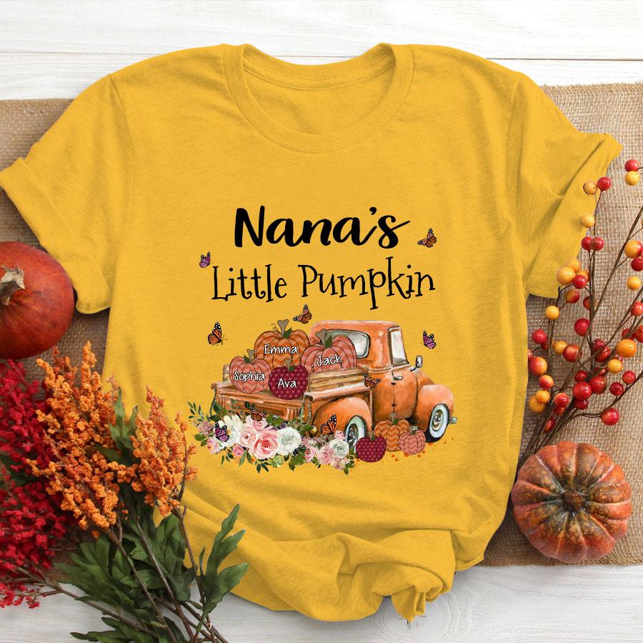 Nana Little Pumpkins Truck Autumn, Personalized Grandkids Names T-Shirt Women