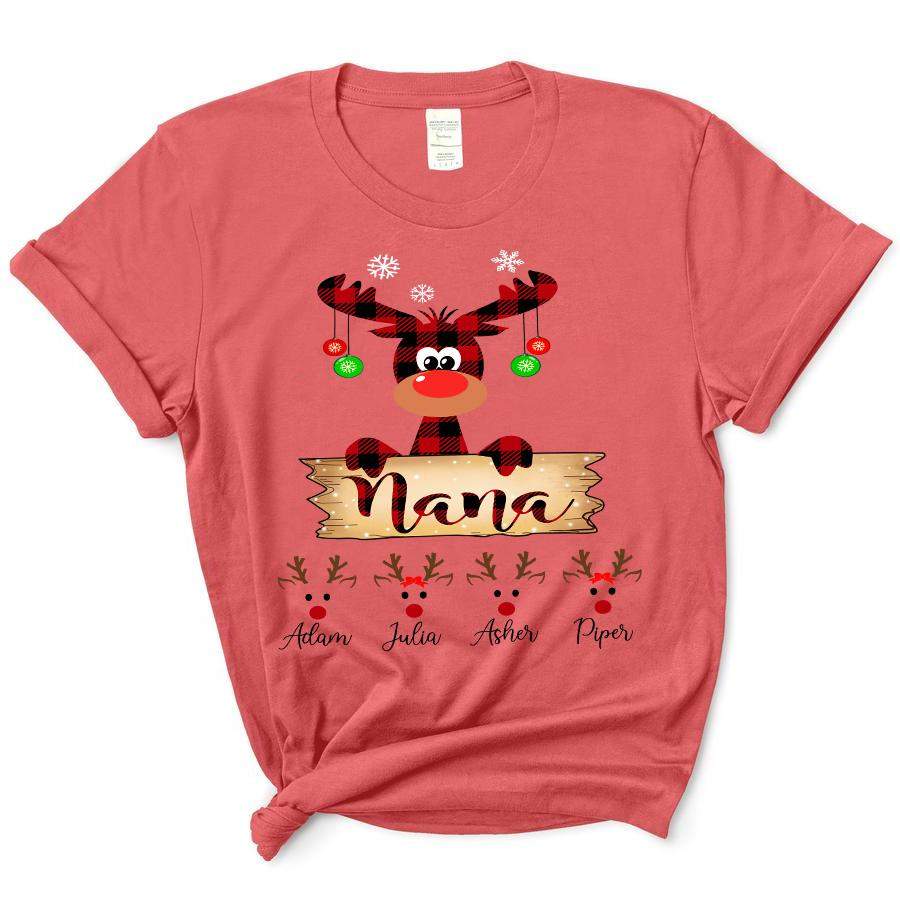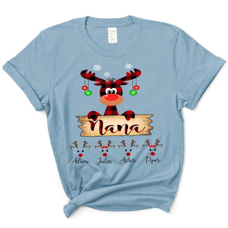 Nana Plaid Reindeer Christmas | Personalized T-Shirt
