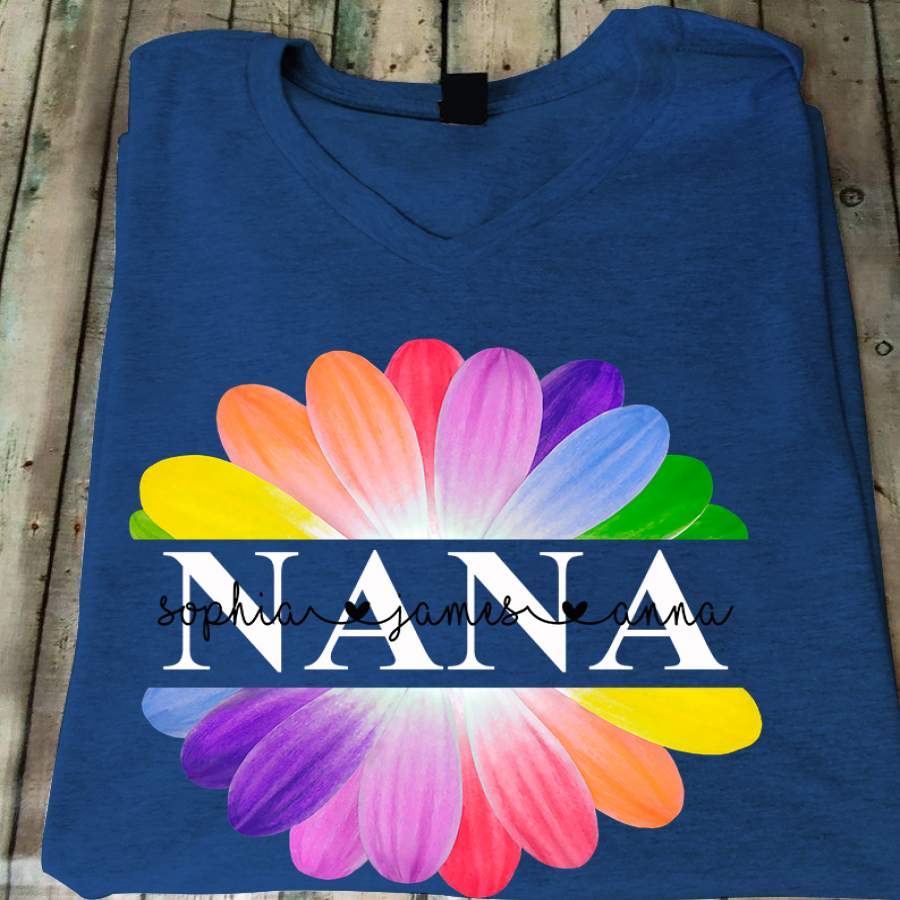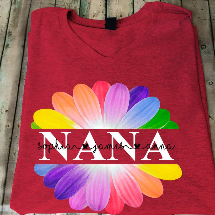 Nana – Rainbow Flower | Personalized V-Neck