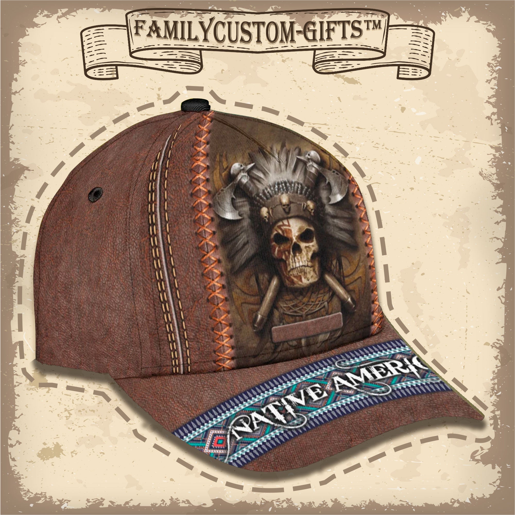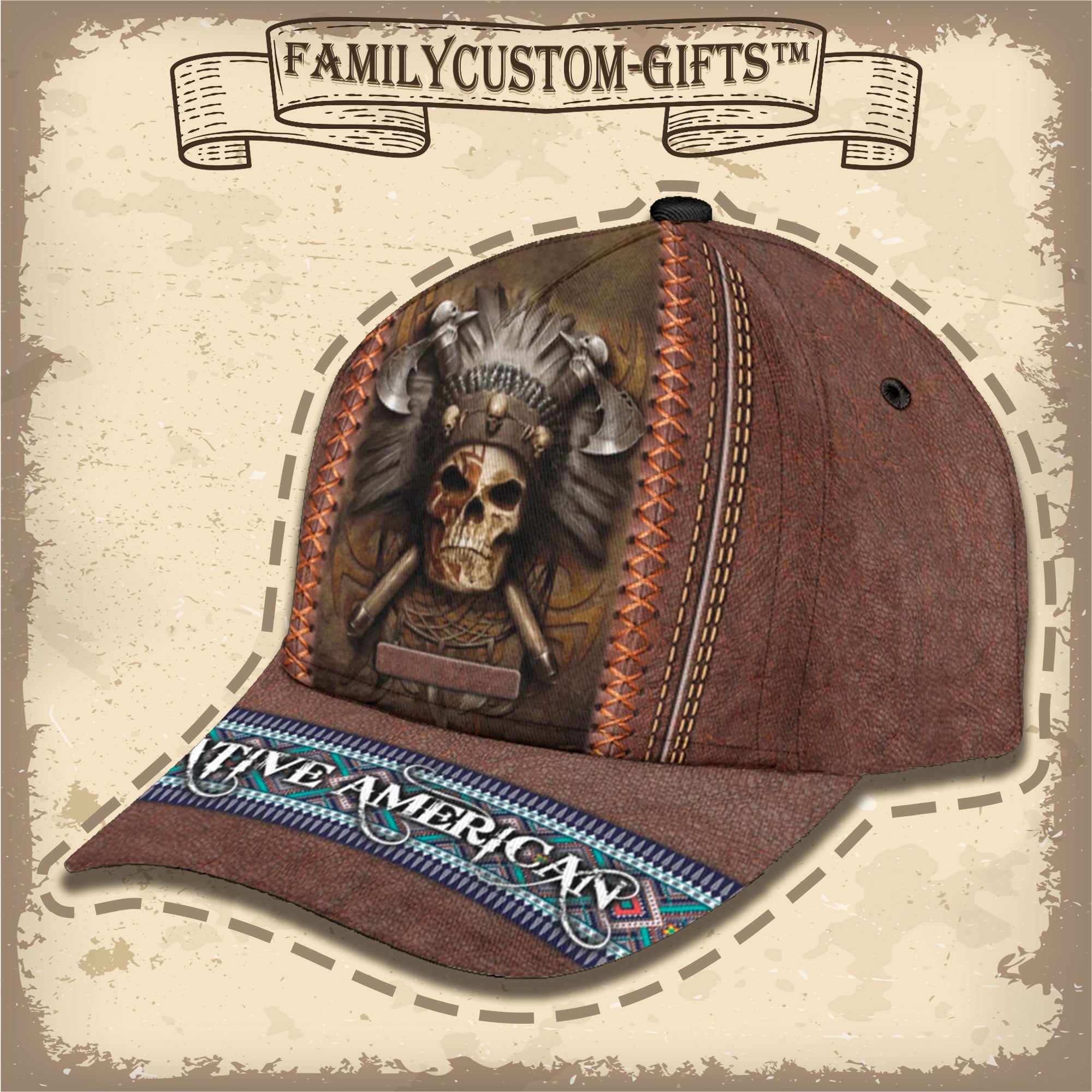 Native American Chief Skull Custom Hats For Men & Women 3D Prints Personalized Baseball Caps