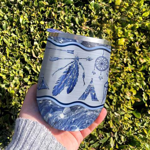 Native American Feather Pattern Personalized Wine Tumbler, Personalized Tumblers, Tumbler Cups, Custom Tumblers