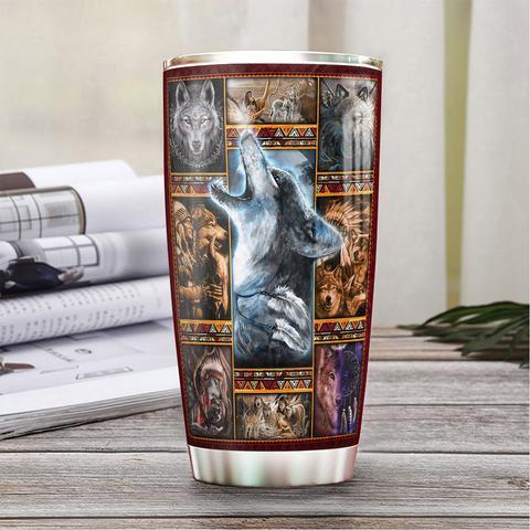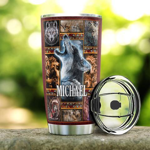 Native Wolf Personalized Stainless Steel Tumbler, Personalized Tumblers, Tumbler Cups, Custom Tumblers