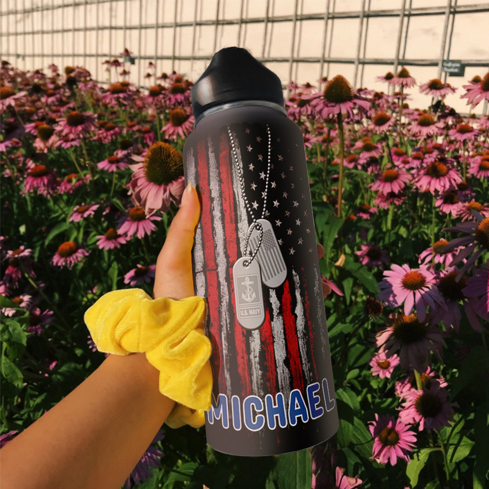 Navy Personalized Mda0310007 Stainless Steel Bottle With Straw Lid