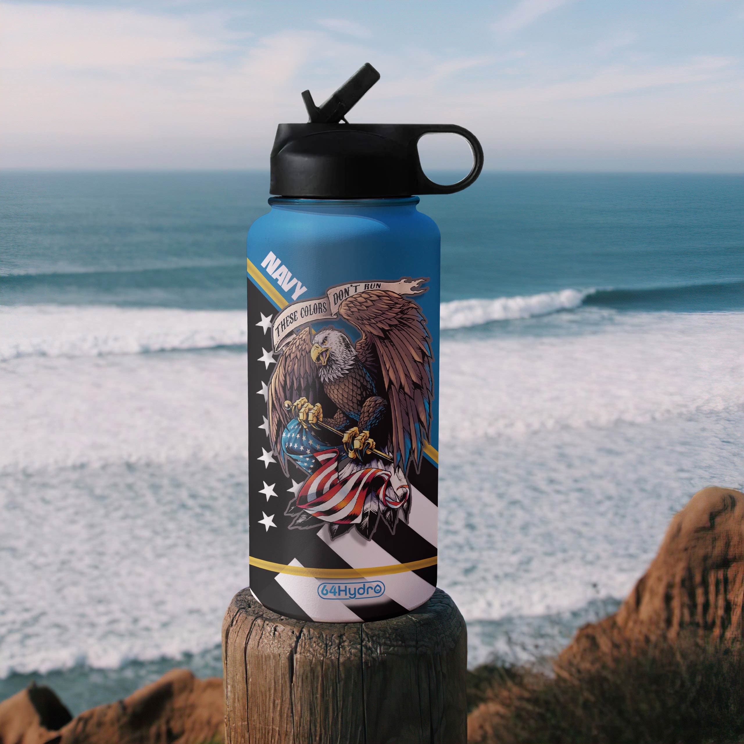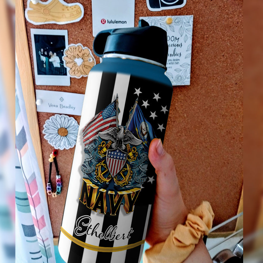 Navy Veteran Personalized Dna2209001 Stainless Steel Bottle With Straw Lid
