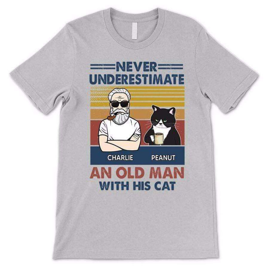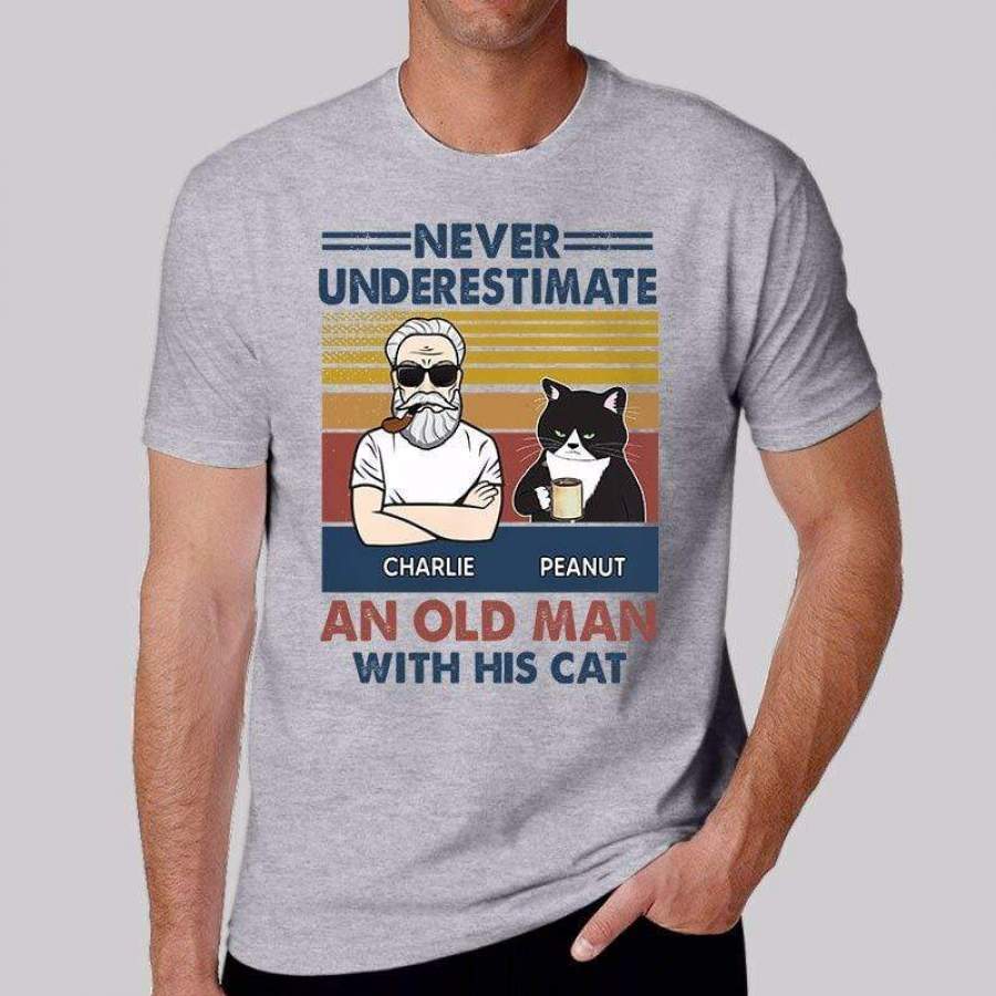 Never Underestimate An Old Man With His Cats Personalized Ash Shirt