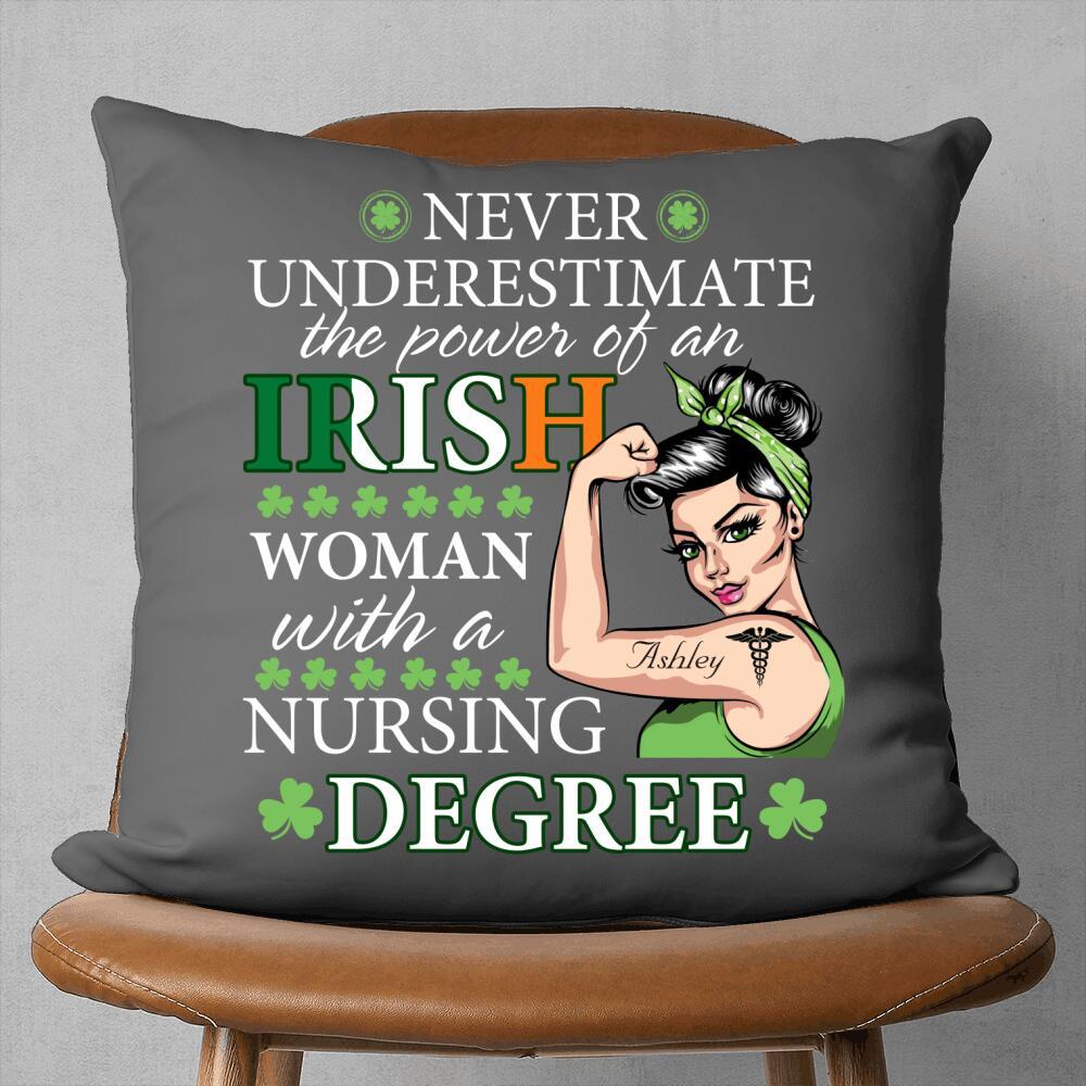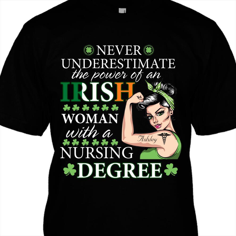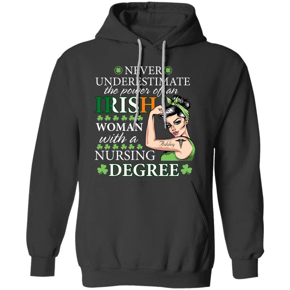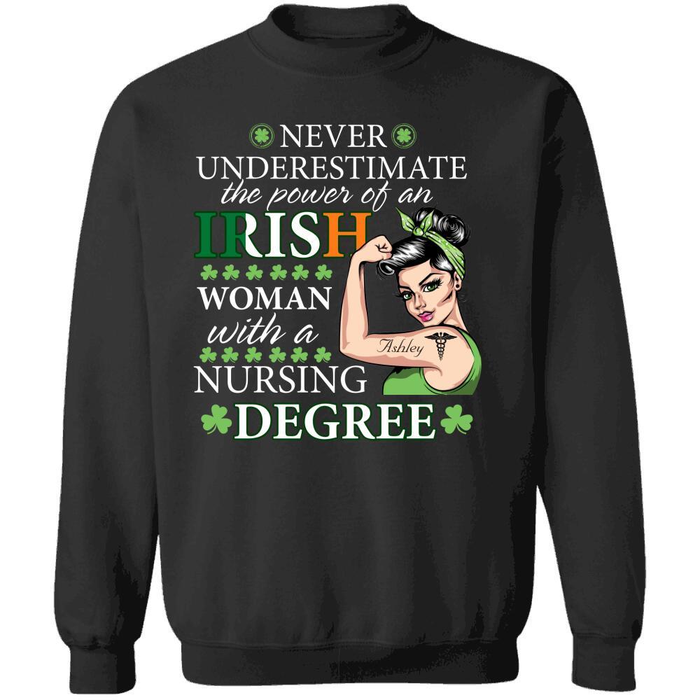 Never Underestimate The Power Of An Irish Nurse Strong Woman St Patrick Day Shamrock Custom Name Personalized T-shirt Hoodie Sweatshirt
