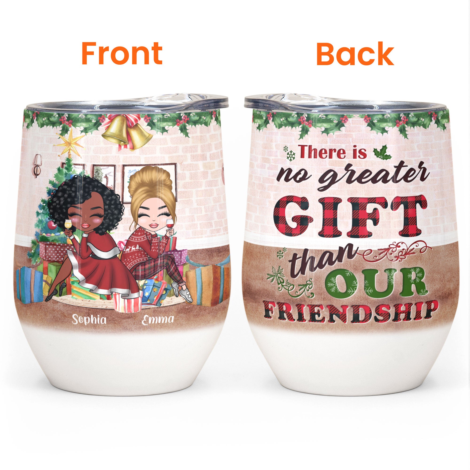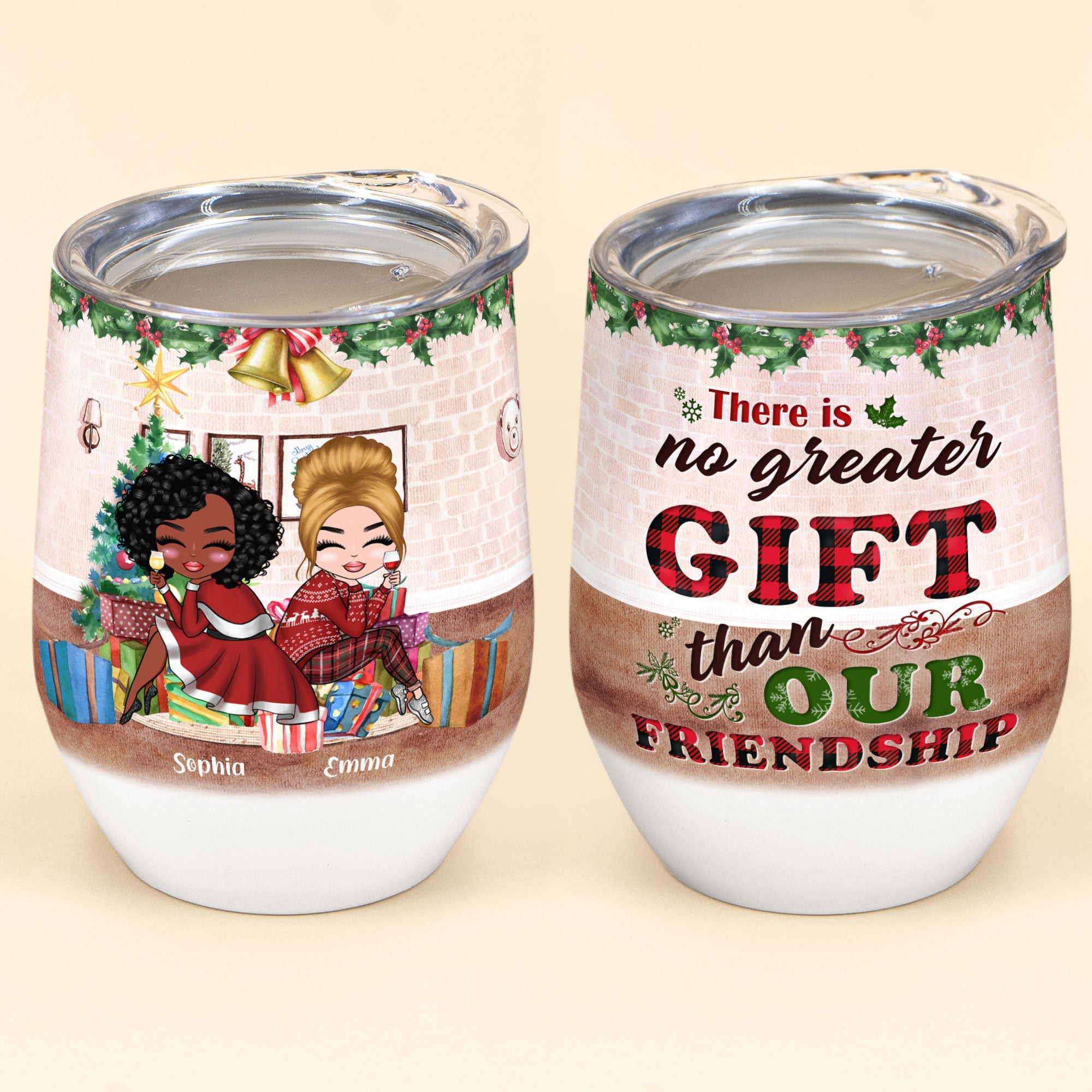 No Greater Gift Than Friendship – Personalized Wine Tumbler – Christmas Gift For 4 Friends