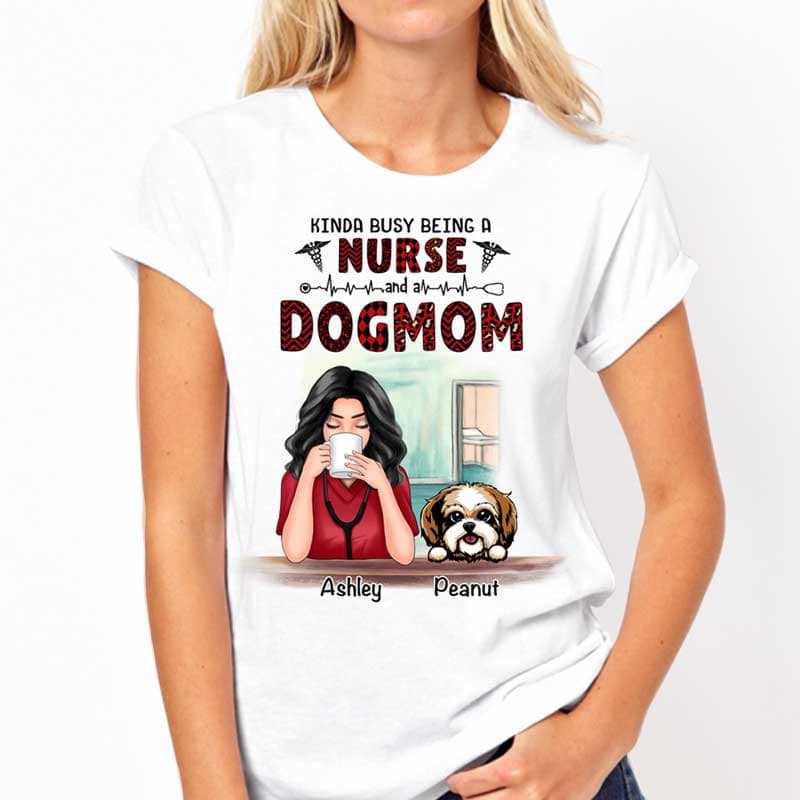 Nurse And Dog Mom Red Pattern Personalized Shirt