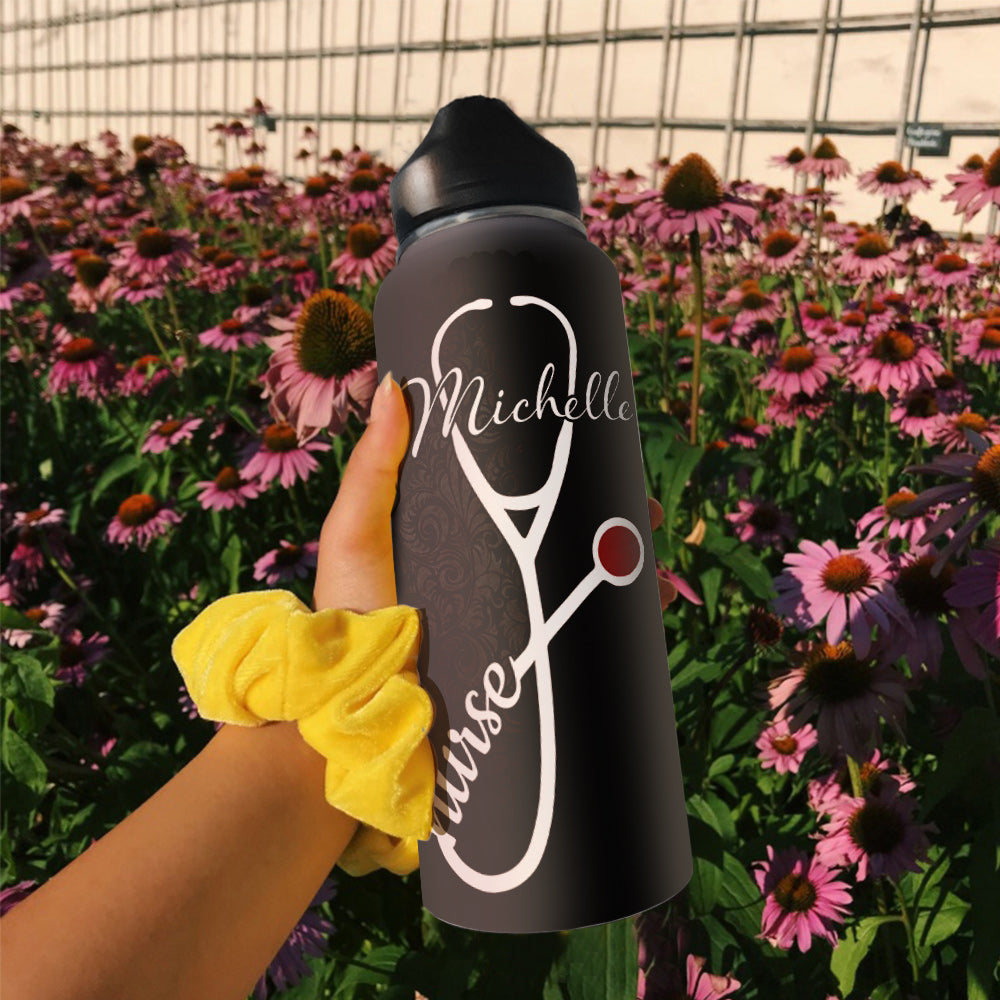 Nurse Personalized Hha1710006 Stainless Steel Bottle With Straw Lid