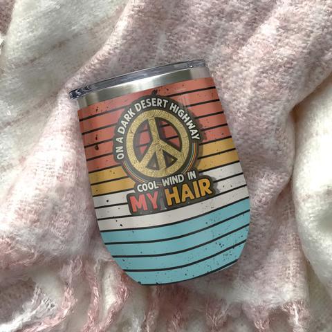 On A Dark Desert Highway Cool Wind In My Hair Pug Hippie Hippie Pug Lover Wine Tumbler Hippie Gift Wine Tumbler, Personalized Tumblers, Tumbler Cups, Custom Tumblers