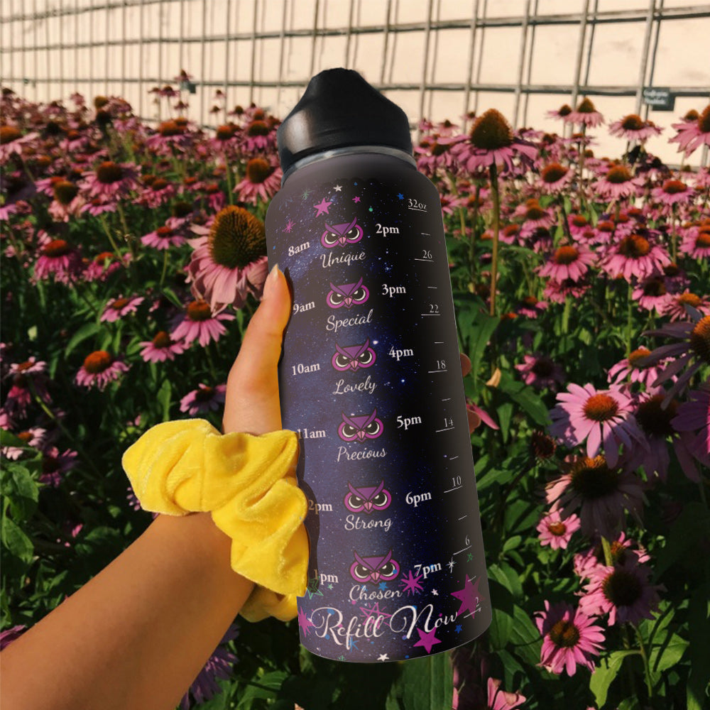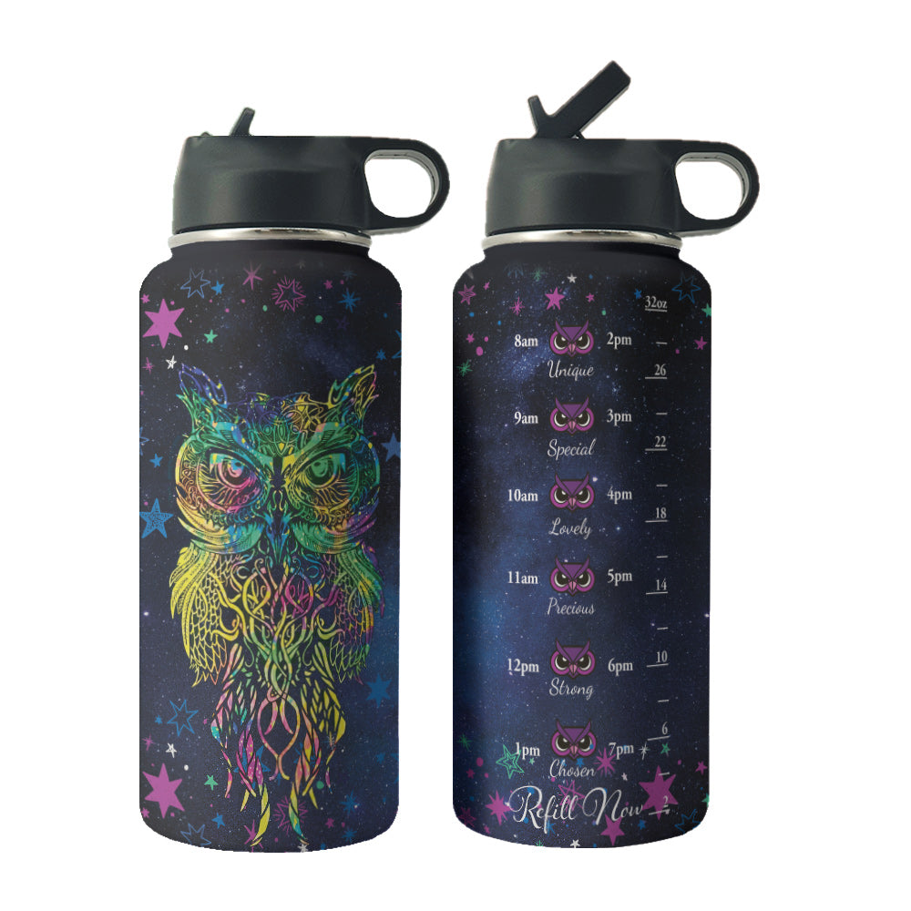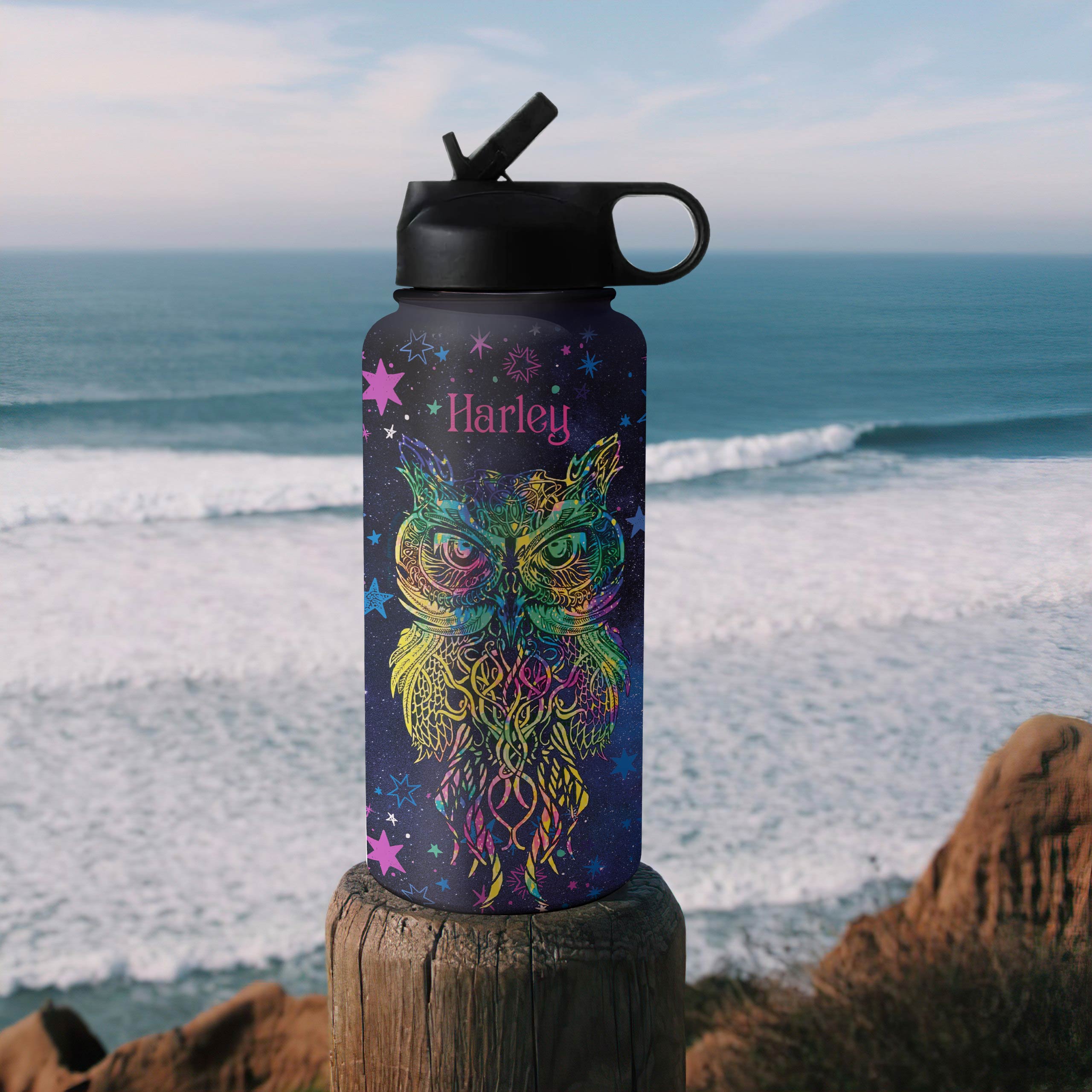 Owl Hologram Personalized Aarz2204010Z Stainless Steel Bottle With Straw Lid