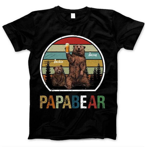 Papa Bear And Baby Cub Father’s Day Gift For Dad Grandpa Retro Vintage Beer Custom Name Up To 3 Kids Personalized T-shirt