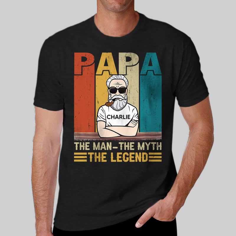 Papa The Legend Retro Stripe Old Man Personalized Shirt