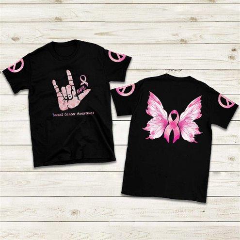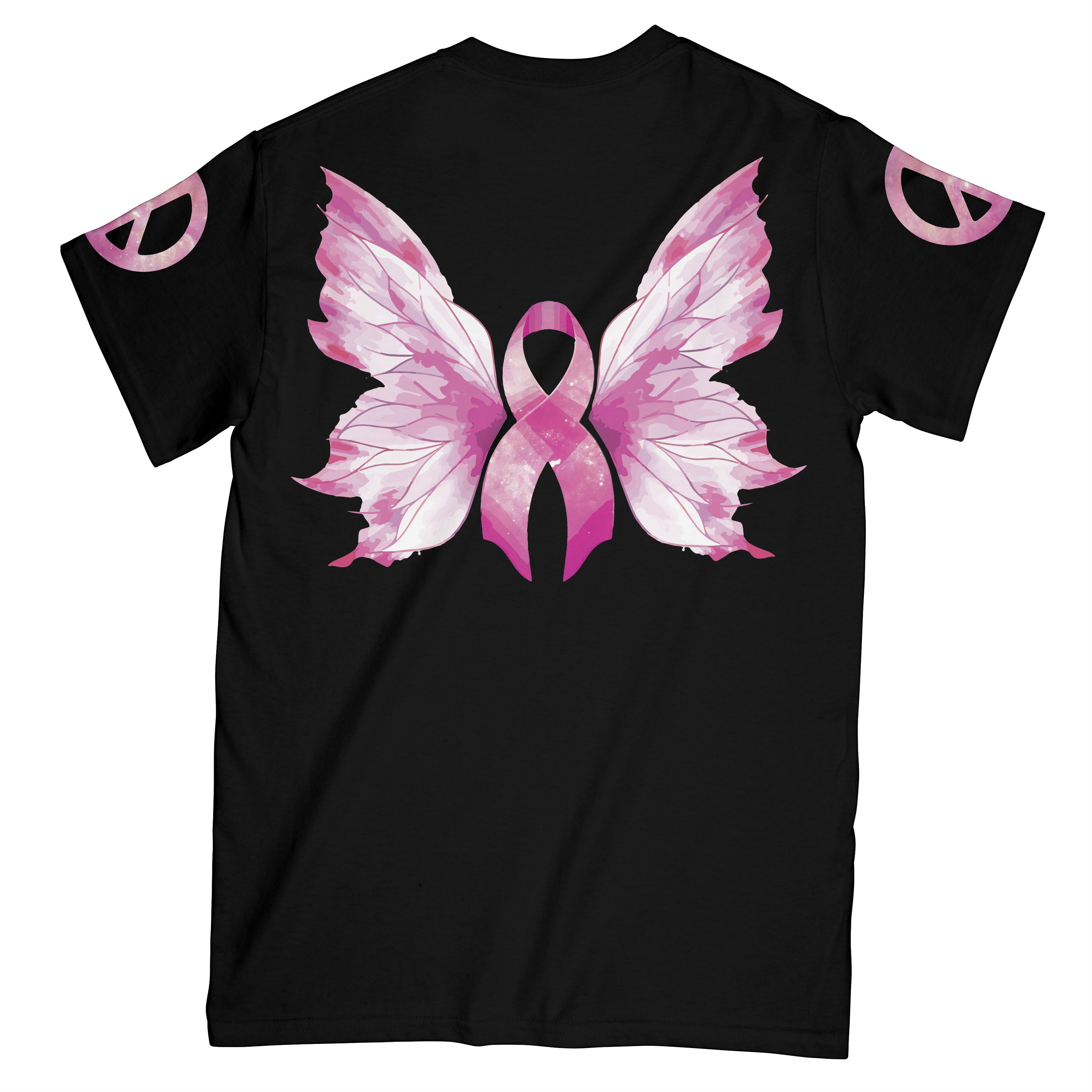 Peace Love Cure Black Breast Cancer Awareness All Over Print T-Shirt, Support Gift For Breast Cancer