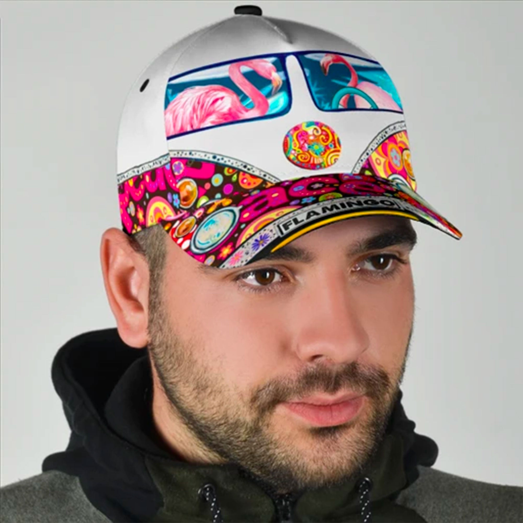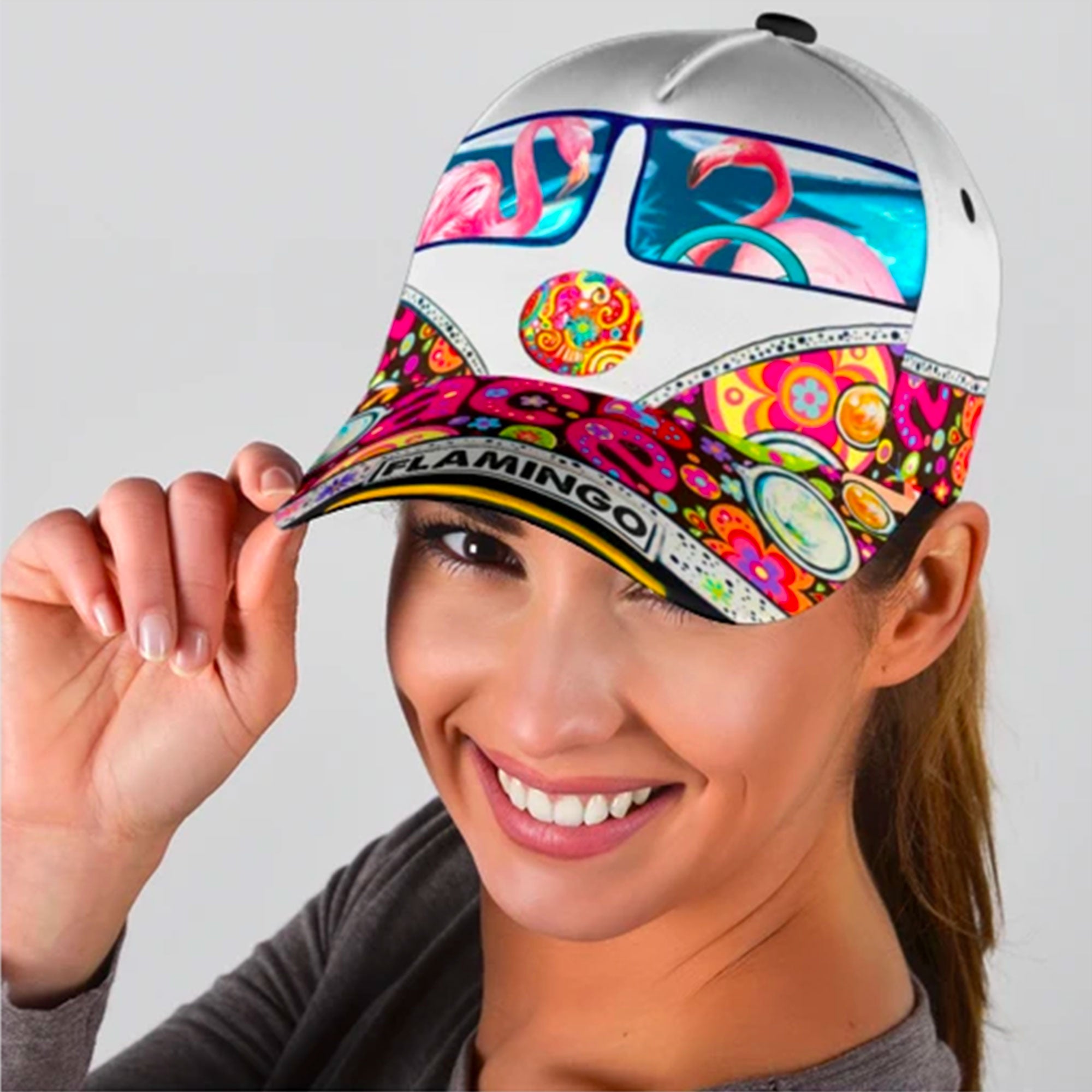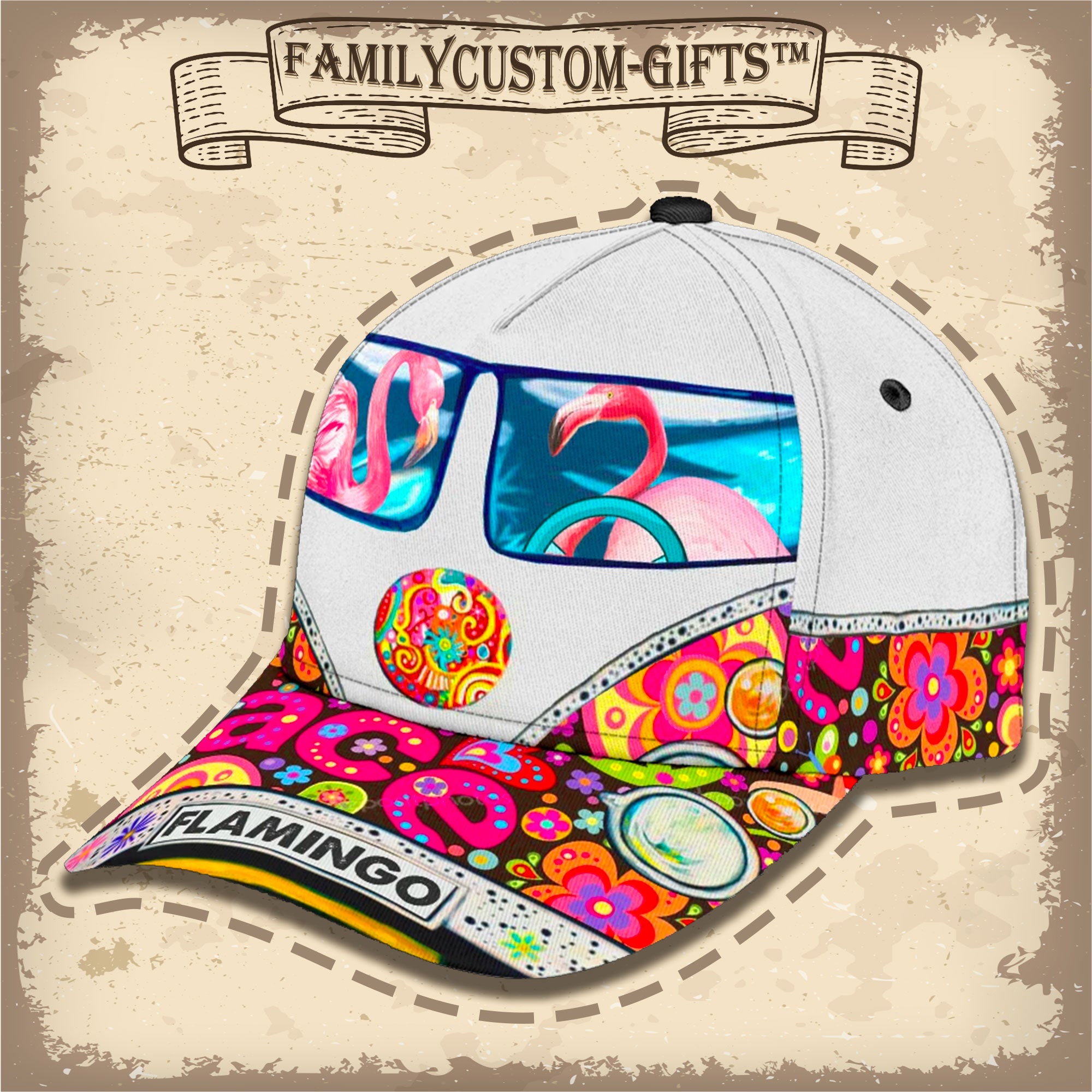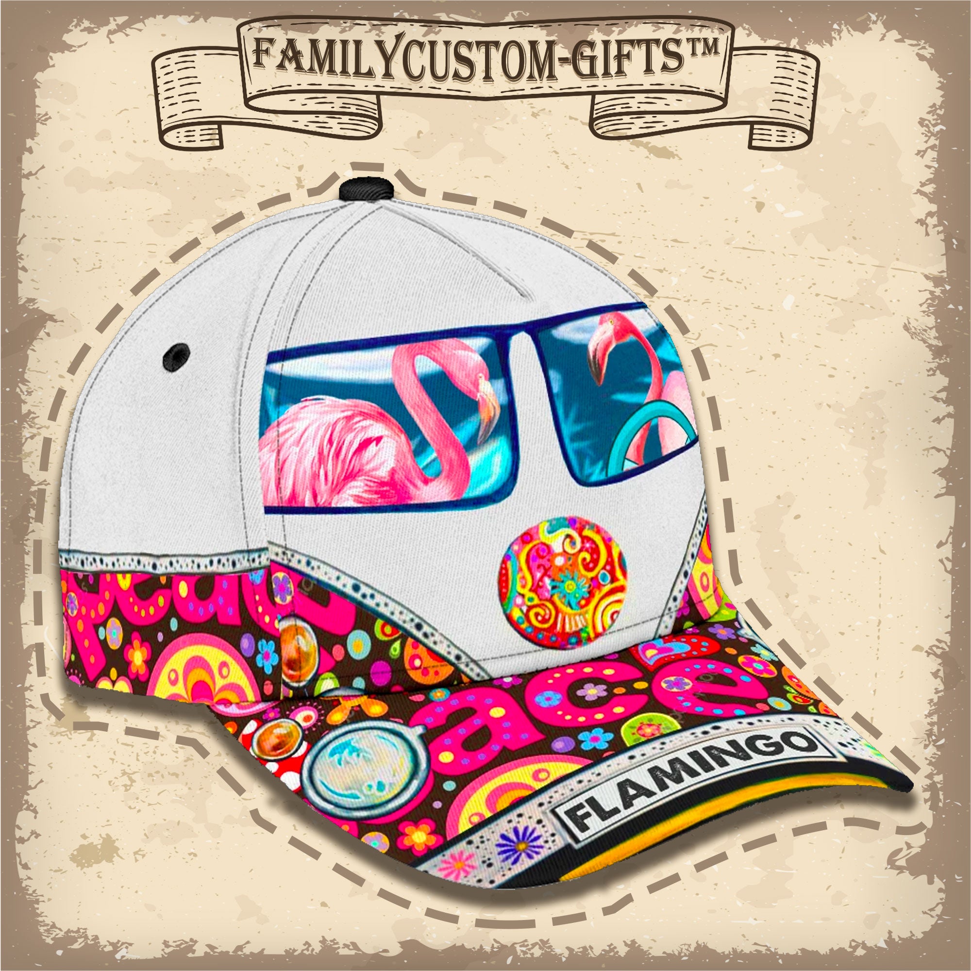 Peace Love Flamingo Custom Hats For Men & Women 3D Prints Personalized Baseball Caps