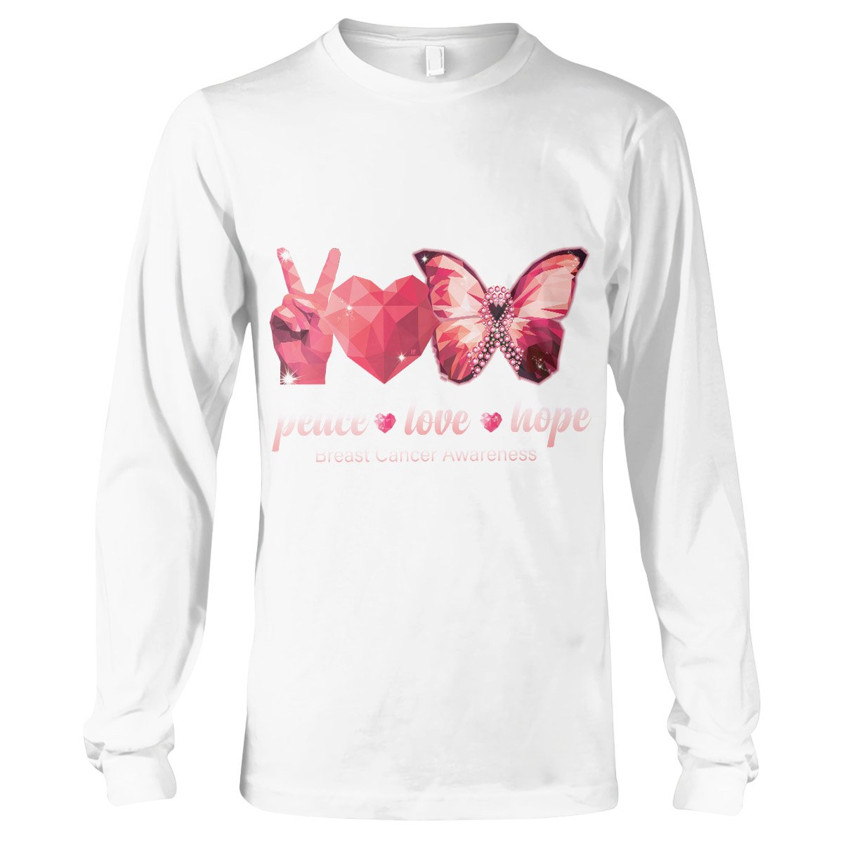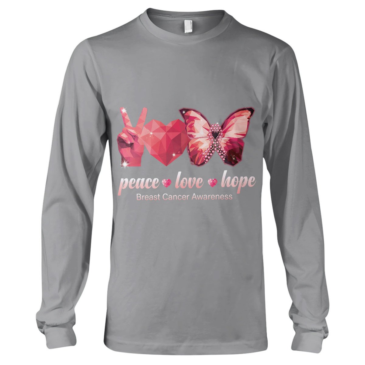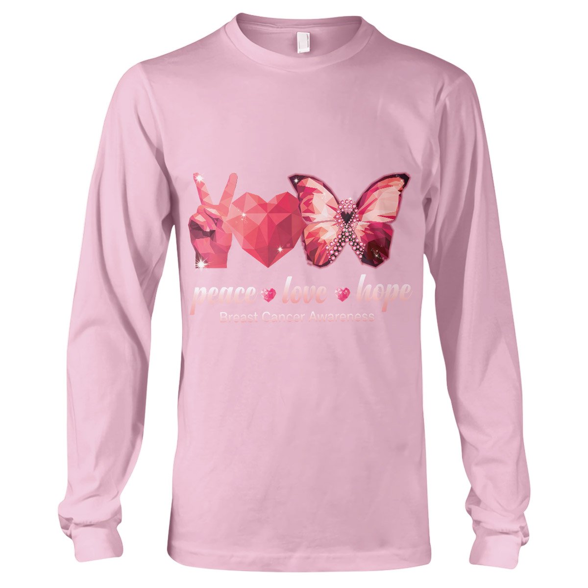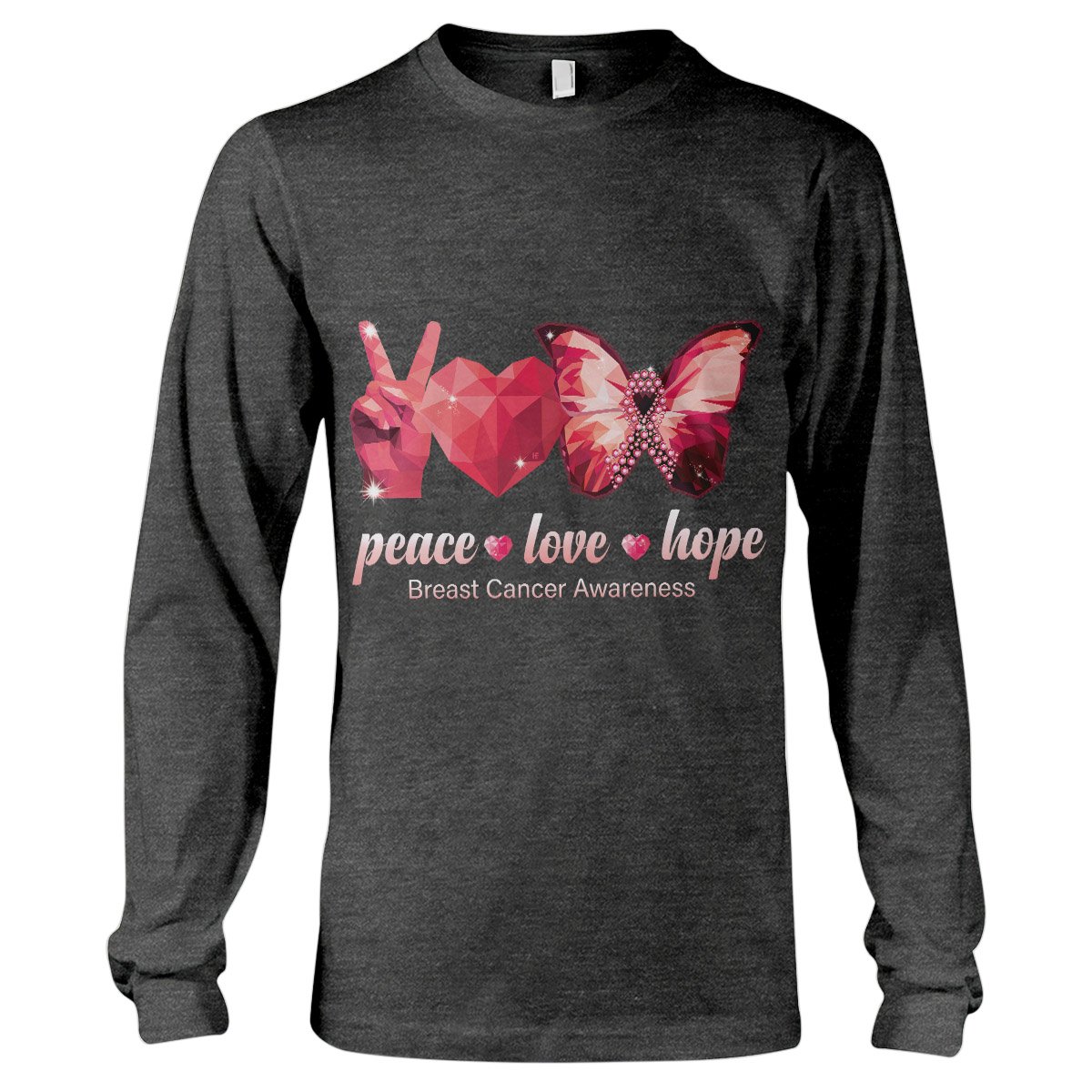 Peace Love Hope Breast Cancer Awareness, Red Ruby Heart Butterfly Awareness Ribbon Long Sleeve T-Shirt