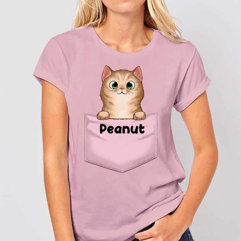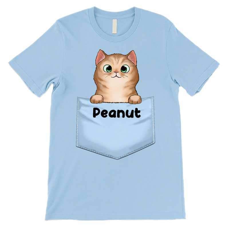 Peeking Fluffy Cat Middle Pocket Personalized Shirt