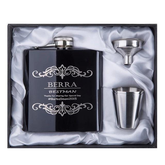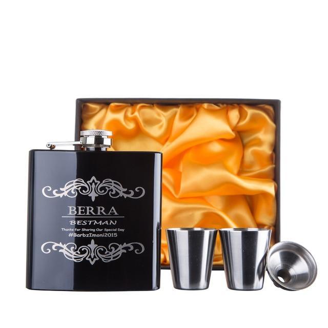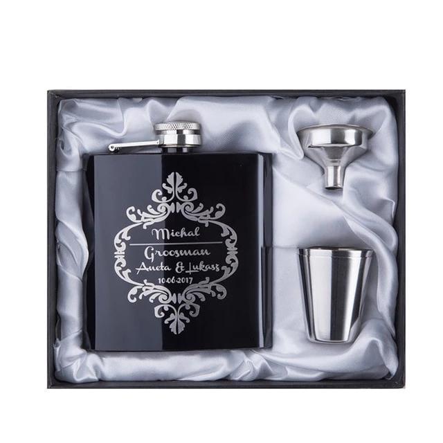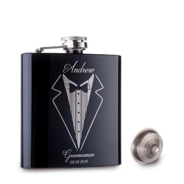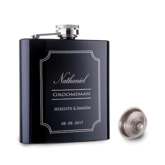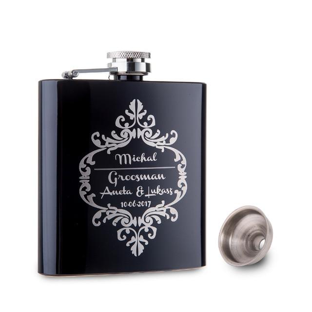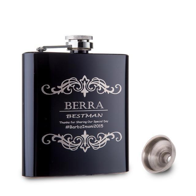 Personalized 6Oz Black Stainless Steel Hip Flask