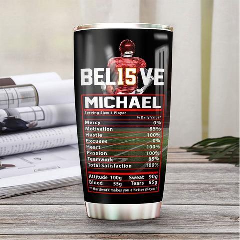 Personalized American Football Believe Stainless Steel Tumbler, Personalized Tumblers, Tumbler Cups, Custom Tumblers