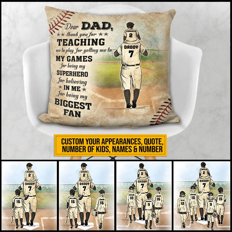 Personalized Baseball Dad And Child Thank You Dad Custom Pillow