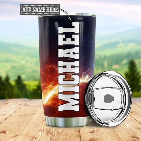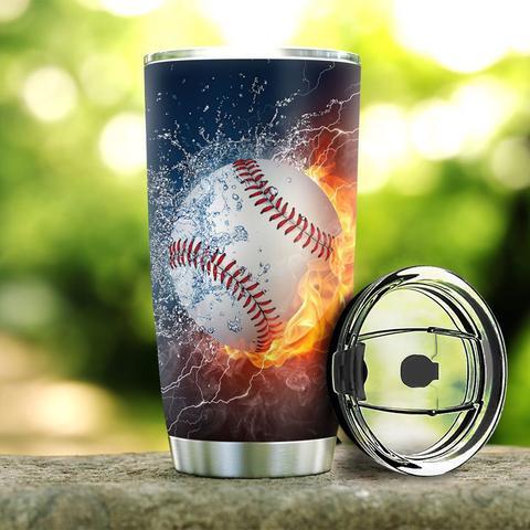 Personalized Baseball Water Fire Stainless Steel Tumbler, Personalized Tumblers, Tumbler Cups, Custom Tumblers