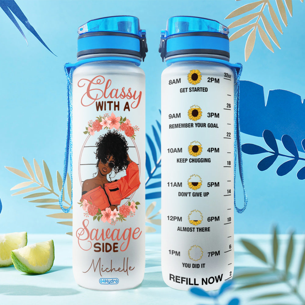 Personalized Black Women Bwm Ttyz1109009Z Water Tracker Bottle