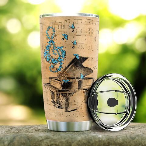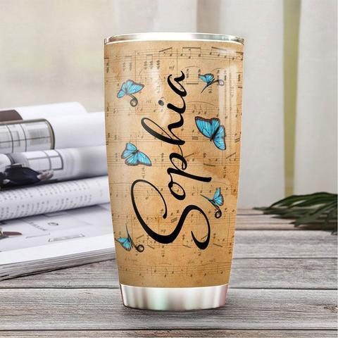 Personalized Blue Butterfly Piano Stainless Steel Tumbler, Personalized Tumblers, Tumbler Cups, Custom Tumblers