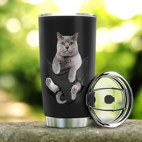 Personalized British Shorthair Cat Pocket Stainless Steel Tumbler, Personalized Tumblers, Tumbler Cups, Custom Tumblers