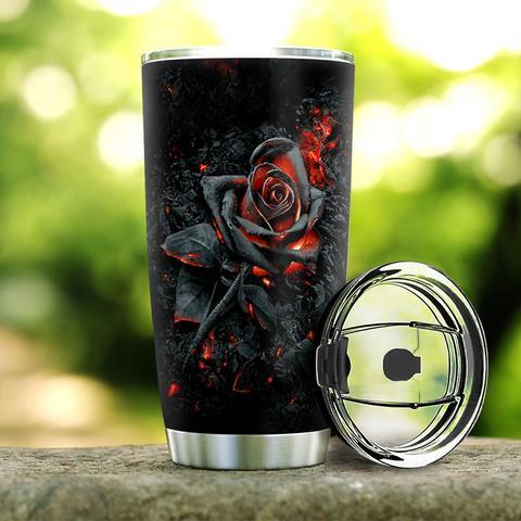 Personalized Burning Rose Stainless Steel Tumbler, Personalized Tumblers, Tumbler Cups, Custom Tumblers