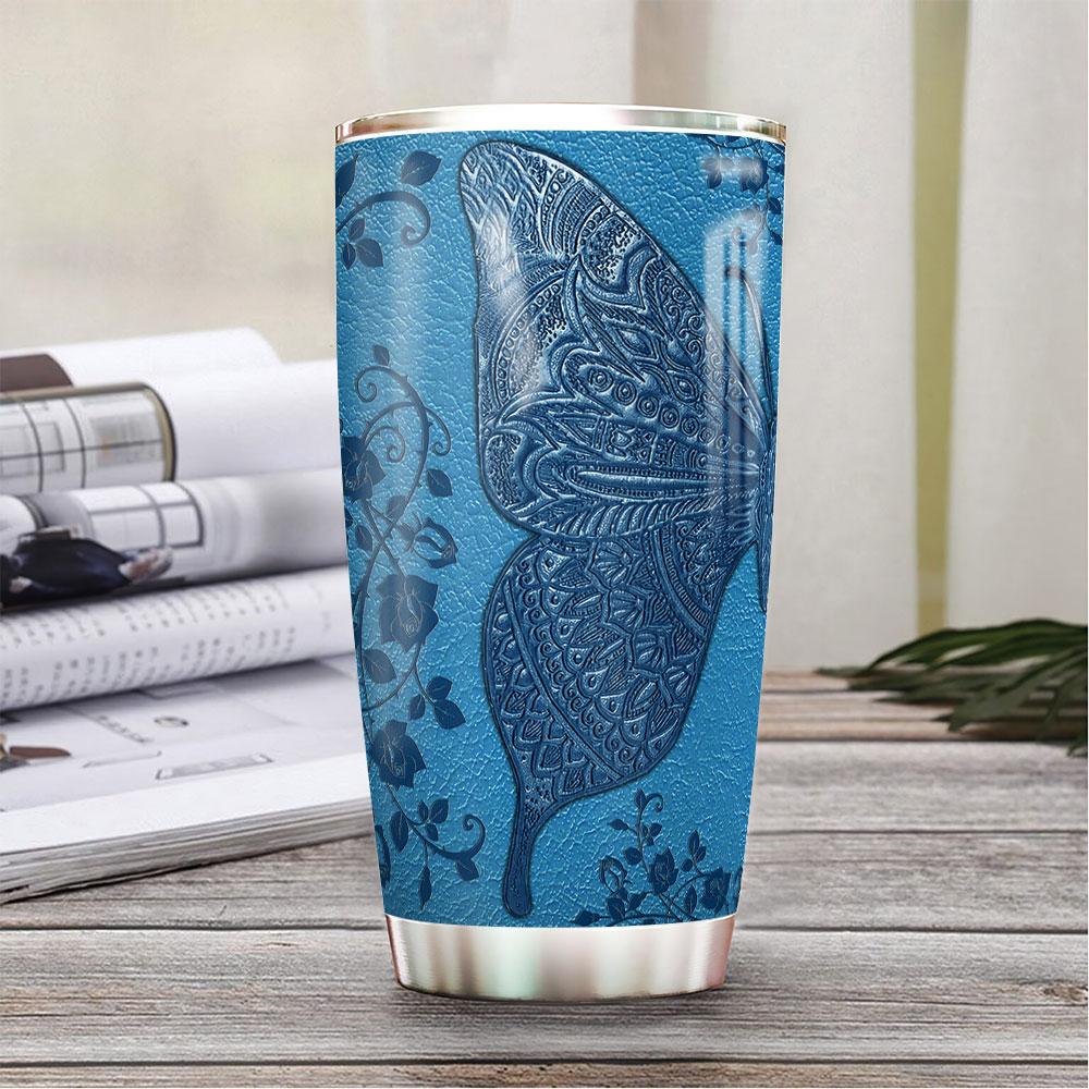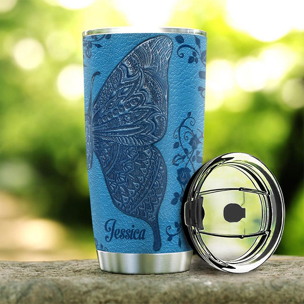 Personalized Butterfly Blue Leather Style Dnm0603004Z Stainless Steel Tumbler