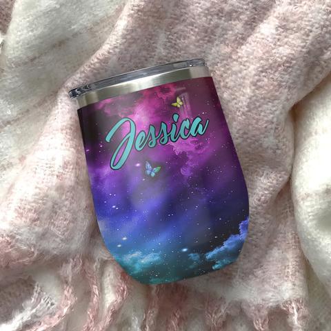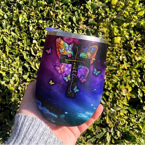 Personalized Butterfly Faith Galaxy Wine Tumbler, Personalized Tumblers, Tumbler Cups, Custom Tumblers