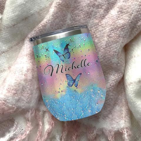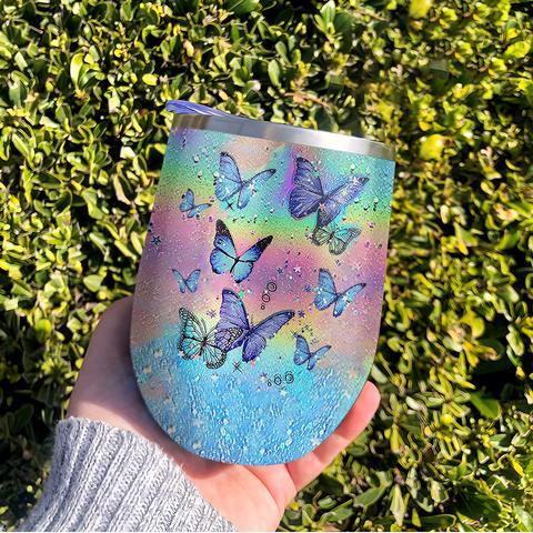 Personalized Butterfly Hologram Wine Tumbler, Personalized Tumblers, Tumbler Cups, Custom Tumblers