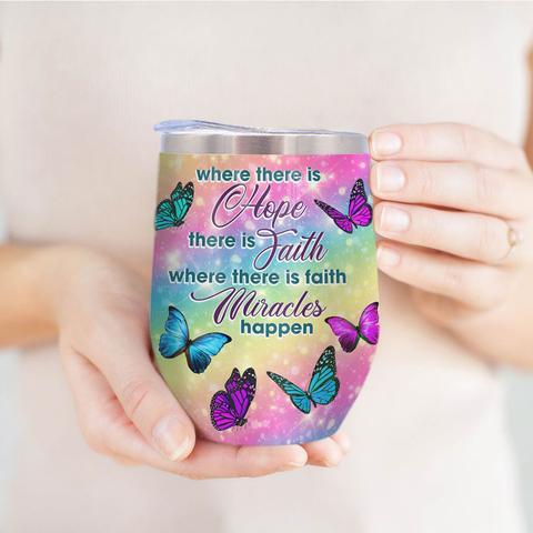 Personalized Butterfly Hope Faith Miracles Wine Tumbler, Personalized Tumblers, Tumbler Cups, Custom Tumblers