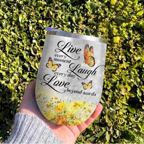 Personalized Butterfly Live Laugh Love Wine Tumbler, Personalized Tumblers, Tumbler Cups, Custom Tumblers