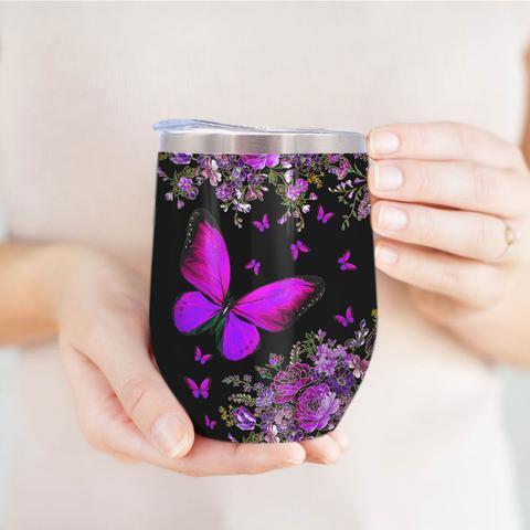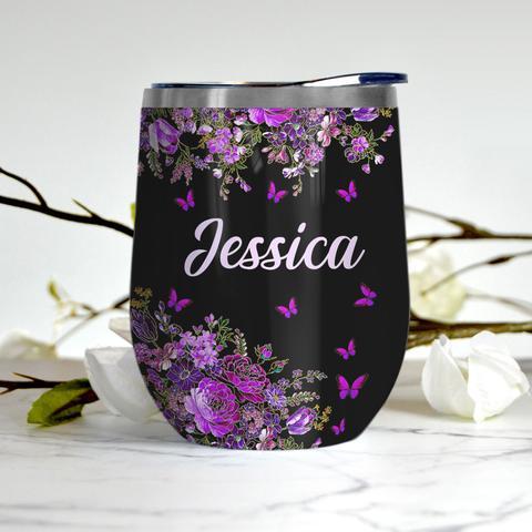 Personalized Butterfly Violet Wine Tumbler, Personalized Tumblers, Tumbler Cups, Custom Tumblers