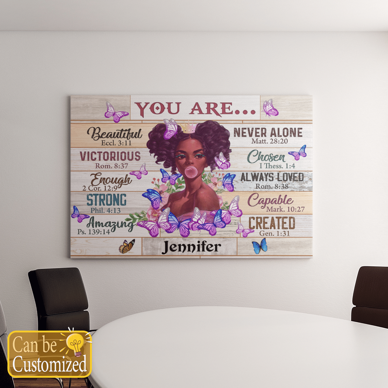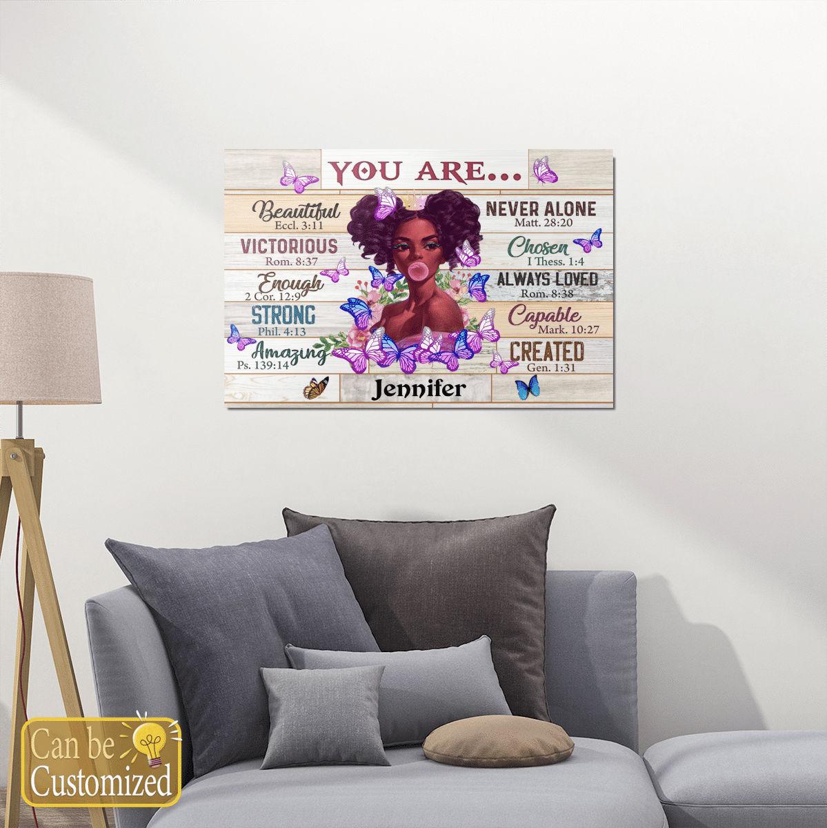 Personalized Canvas Poster For Black Girl And Butterfly Wall Art Gift For Black Women