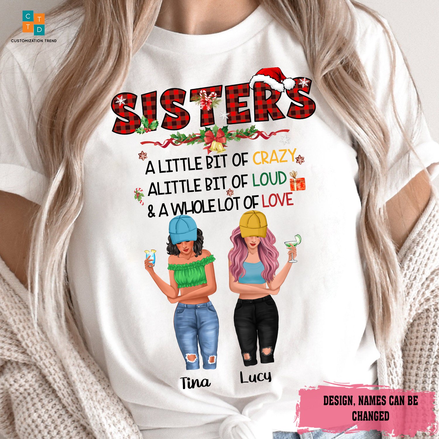 Personalized Christmas Cool Girls A Little Bit Of Crazy Xmas Shirt, Custom Sisters, Friends, Besties Shirt