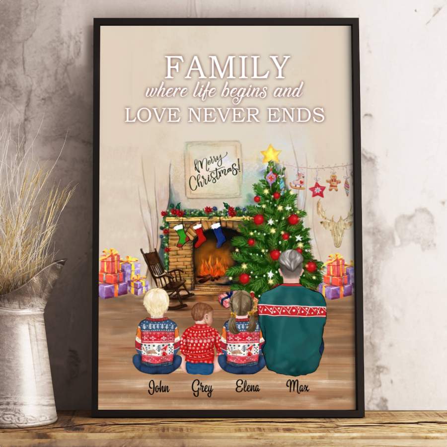 Personalized – Christmas – Family – Dad with children – Choose up to 3 children Canvas/Canvas with frame/Poster