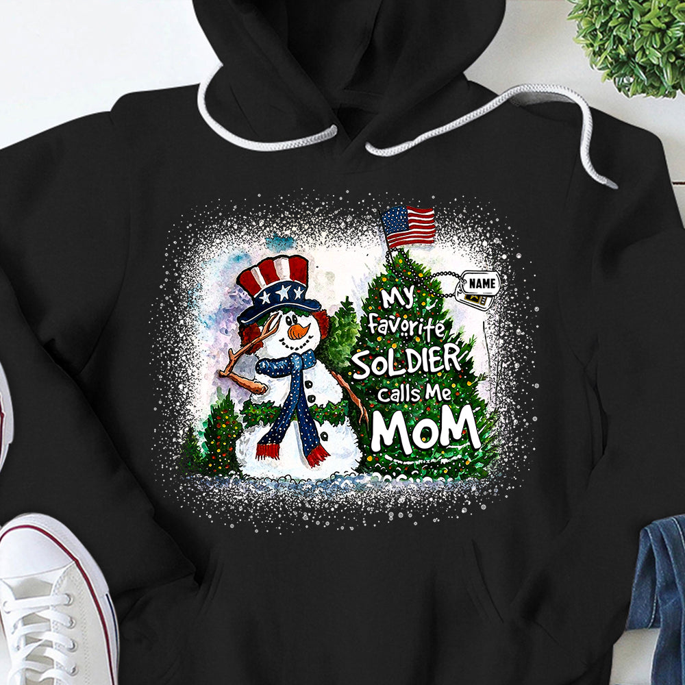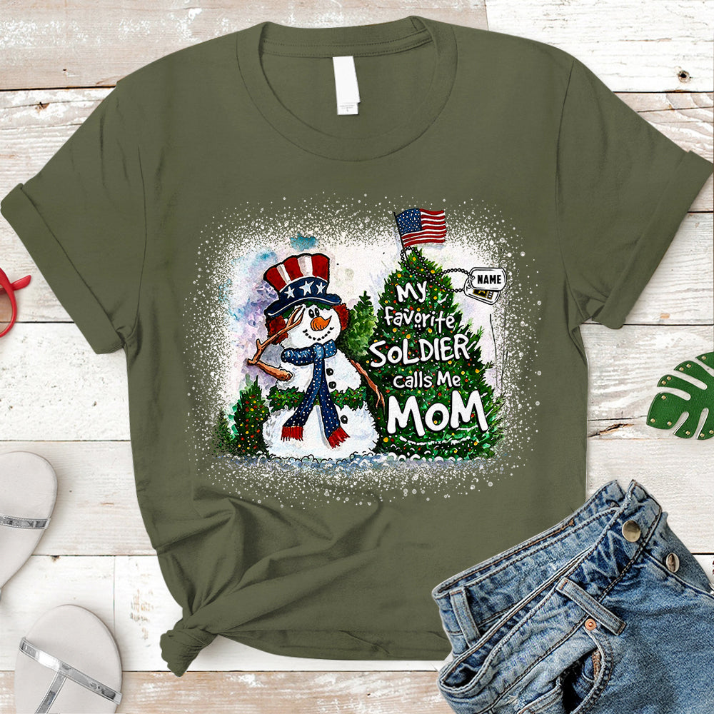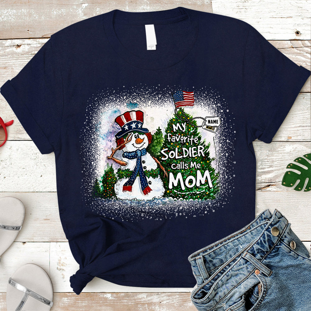 Personalized Christmas Shirt My Favorite Soldier Calls Me Mom Dad Wife Christmas Snowman Pine With Hastag Shirt For Armed Forces Family Member H2511